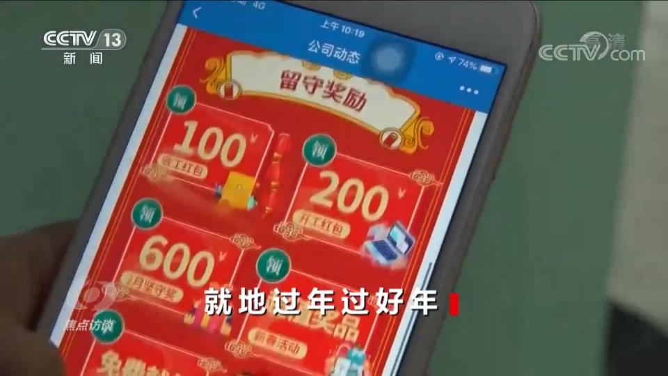 异地务工人员范海亮说:“在法定假日工作规定的三倍工资之外,额外每天还给予200元的留守奖励,大年三十当天12到16道菜不等,有拔河比赛,还有抽奖活动。因为留守过年,公司也比较人性化,抽了一些奖品帮我们邮寄回家,替自己尽孝心。”