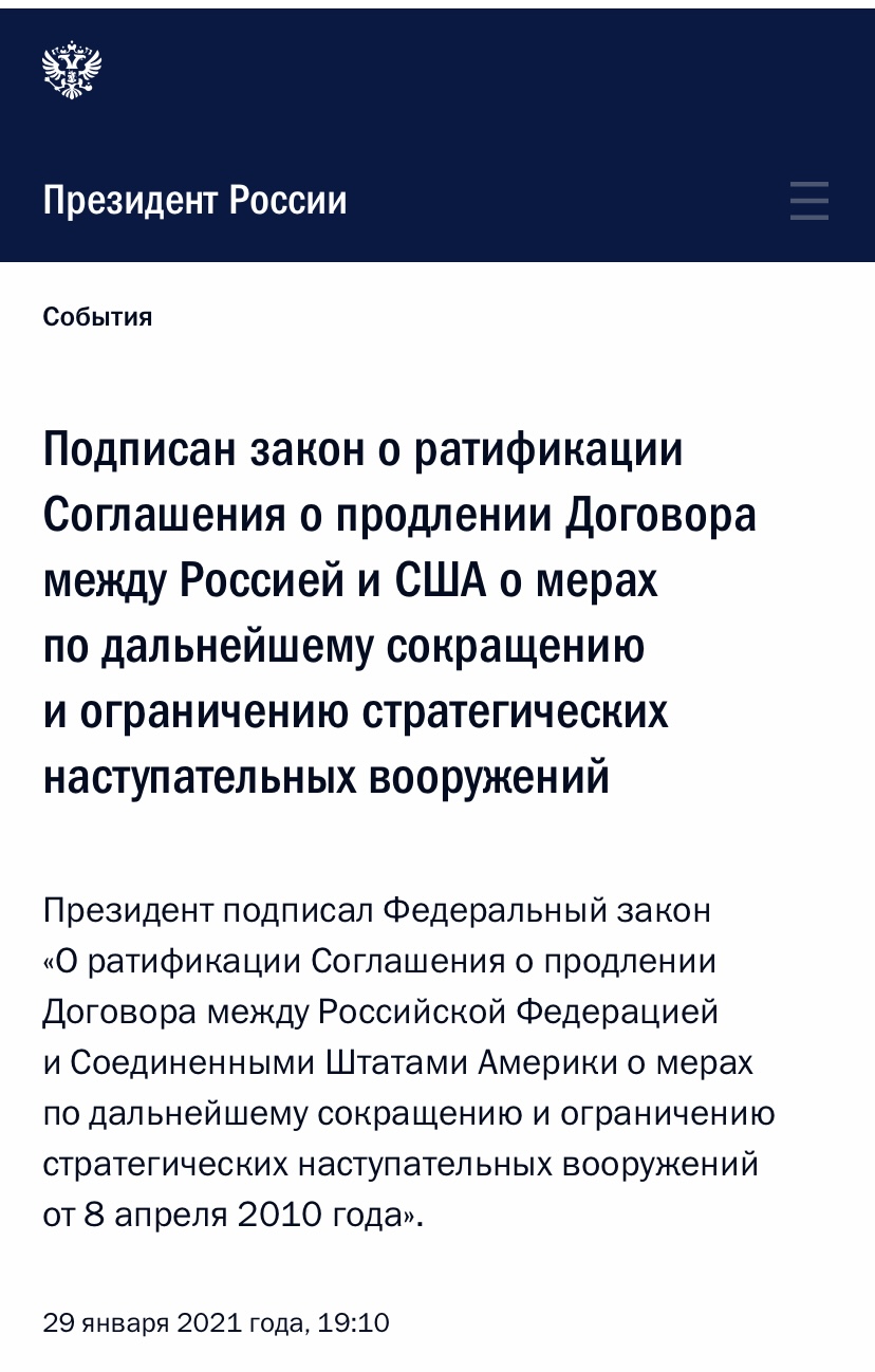 本月27日,俄罗斯国家杜马(议会下院)和联邦委员会(议会上院)分别以快速程序批准延长俄美《新削减战略武器条约》有效期5年。