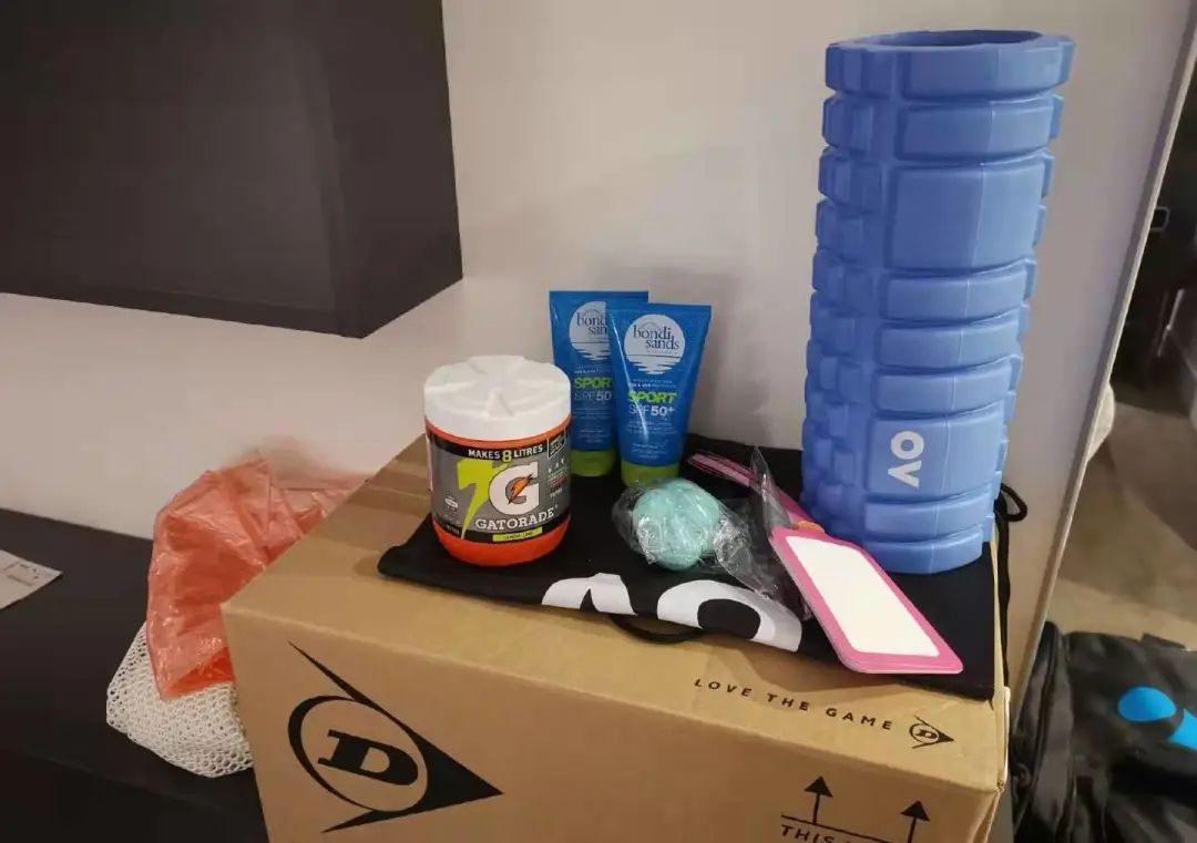 澳网在球员们的房间内贴心准备了防晒霜、瑜伽柱等物品