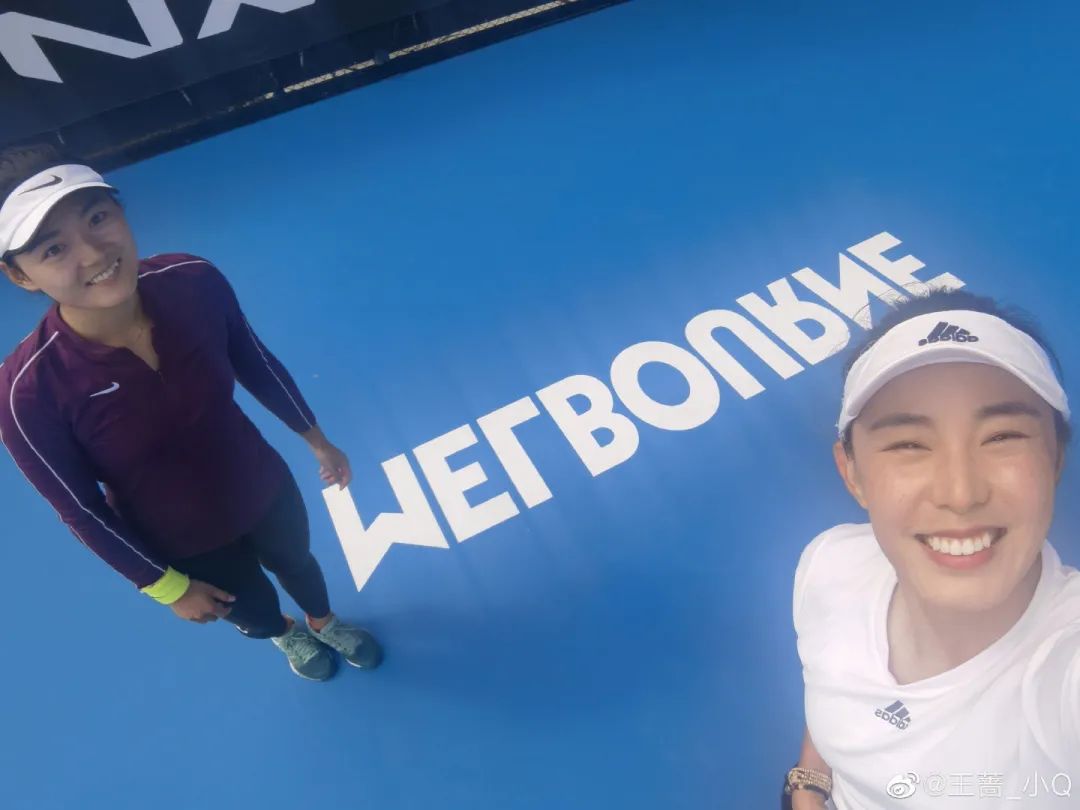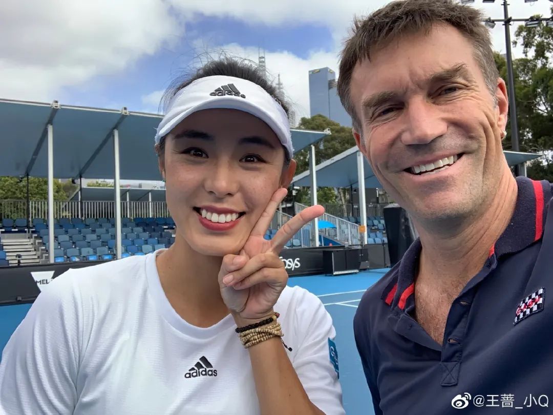 王蔷和新教练帕特·卡什、训练搭档王雅繁在墨尔本公园展开训练