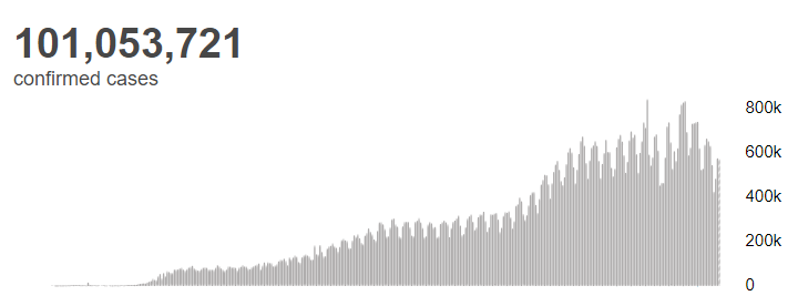 根据世卫组织最新实时统计数据,截至欧洲中部时间1月29日18时43分(北京时间1月30日1时43分),全球累计确诊新冠肺炎病例101053721例,累计死亡病例2182867例。29日全球新冠肺炎确诊病例新增570976例,死亡病例新增15716例。(总台记者 朱赫)