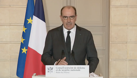 当地时间1月29日晚,法国总理卡斯泰在出席总统府爱丽舍宫召开的疫情防御会议后发表讲话,宣布了法国政府为应对当前新冠疫情加速蔓延从而采取的最新举措。