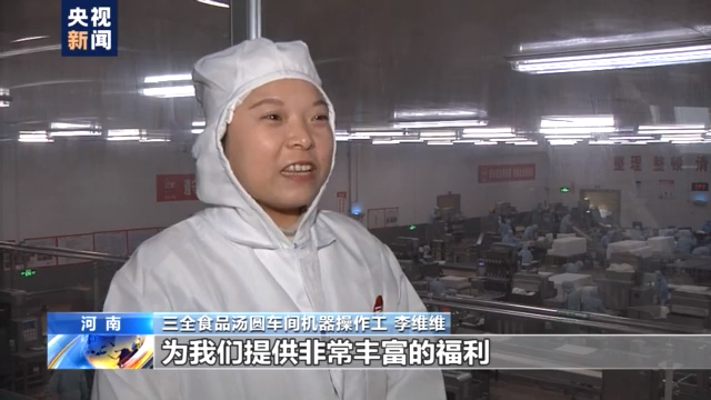 三全食品汤圆车间机器操作工 李维维:公司在春节期间为我们提供非常丰富的福利,也能热热闹闹在这里过个年,也算是为国家疫情防控付出自己一点的微薄之力。