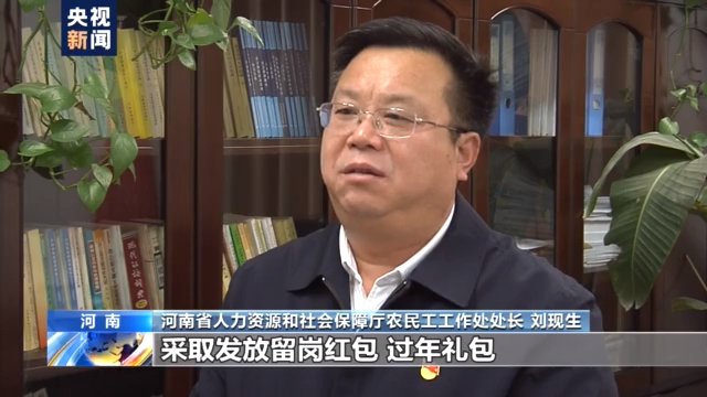 河南省人力资源和社会保障厅农民工工作处处长 刘现生:倡导务工人员就地过年,一方面要鼓励企业采取发放留岗红包、过年礼包、安排文化娱乐活动、提高食宿标准等措施,吸引职工就地过年。另一方面,要深化与重点劳务输入省份的协作,帮助在外务工人员落实好工资、休假等待遇,让他们能够感受到来自家乡的关心。