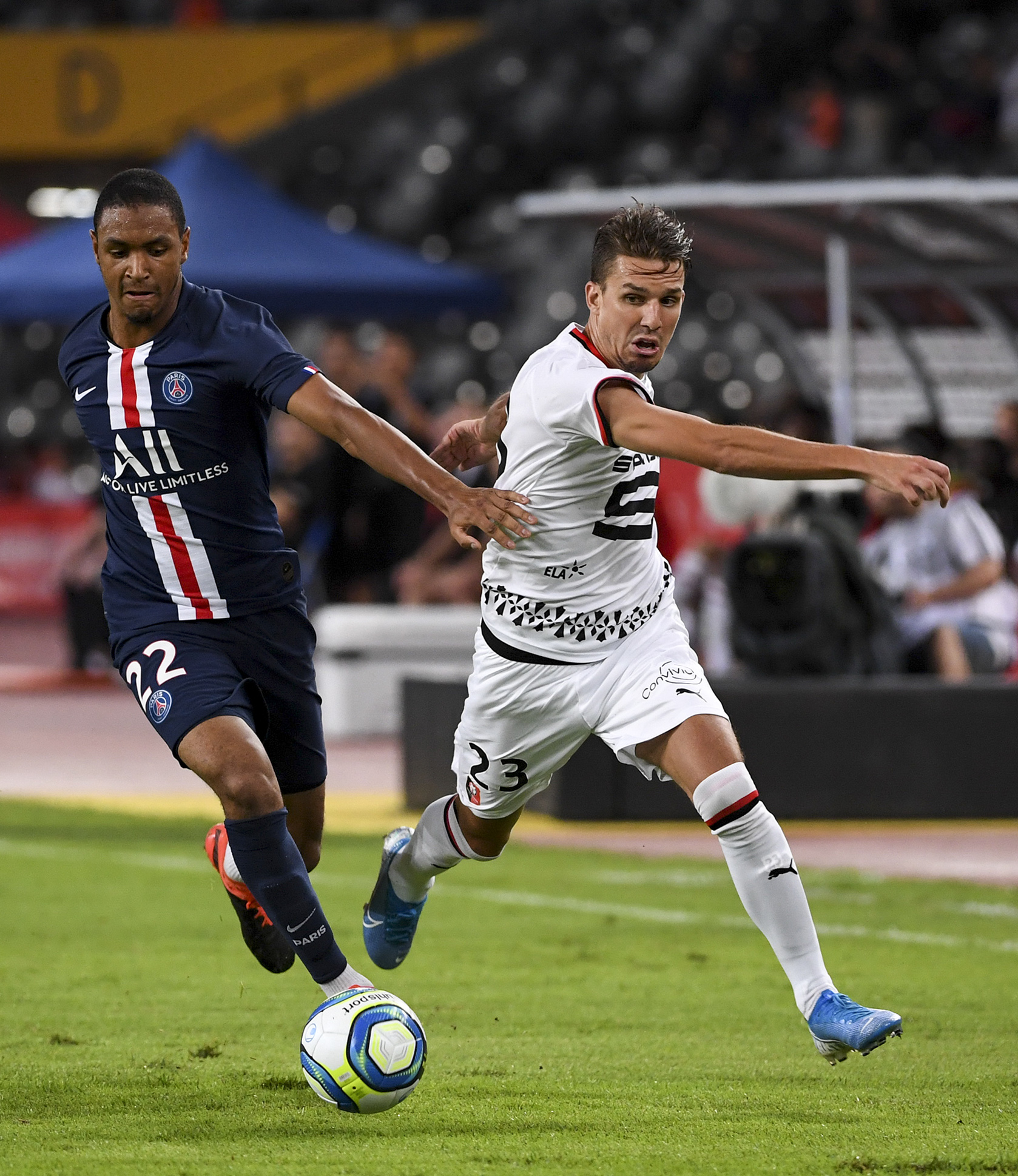 8月3日,图为巴黎圣日耳曼队球员迪亚洛(左)。新华社记者梁旭摄