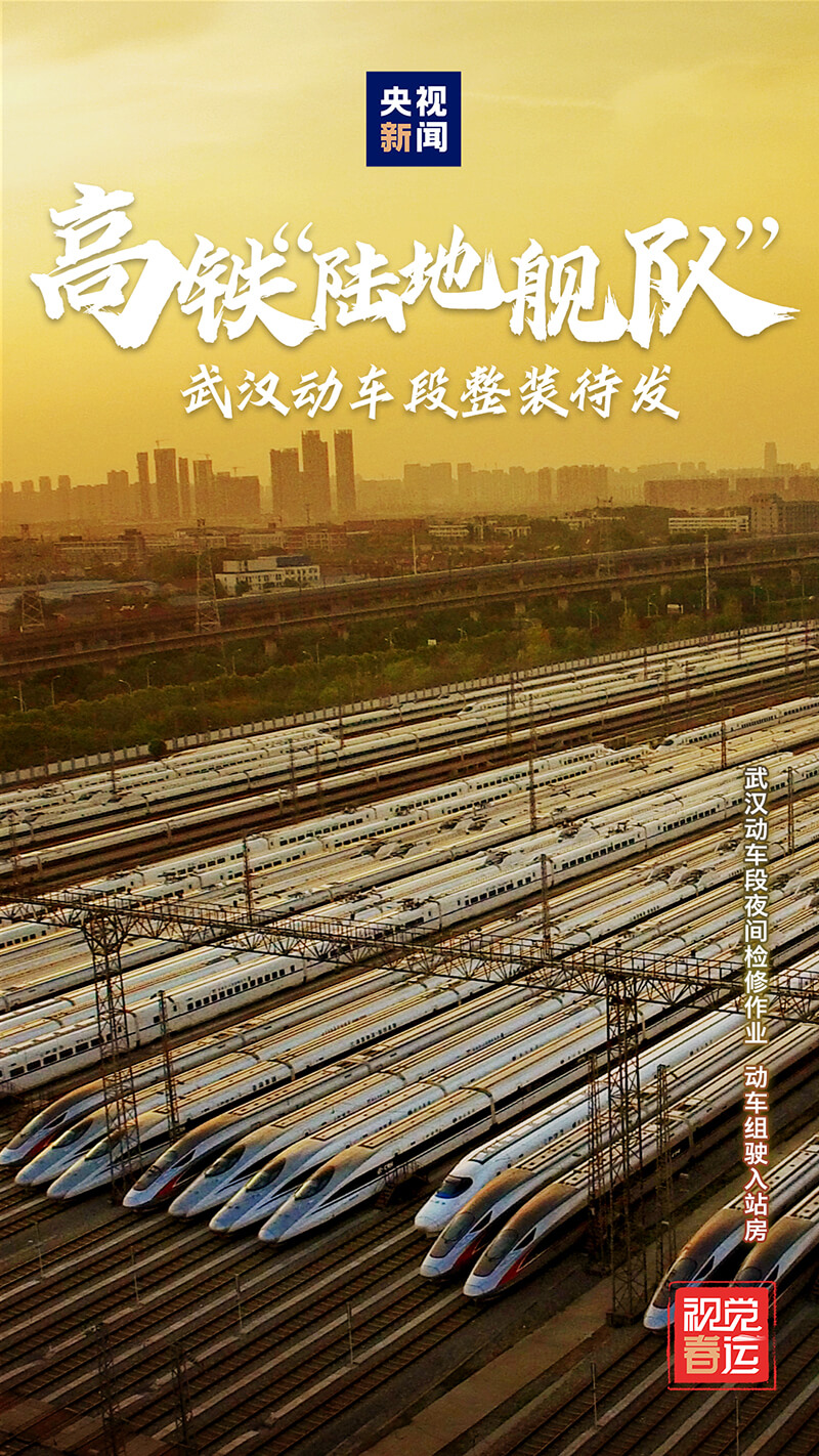 2021年春运期间,预计每晚将有200余列动车组在武汉动车段进行检修。列队集结,严阵以待,如“陆地舰队”一般保障春运平稳进行。作为疫情防控常态化下的首个春运,武汉动车段的“高铁医生”们在常规检修工作中,又将疫情防控工作同步深入,为旅客平安出行撑起 “保护伞”。