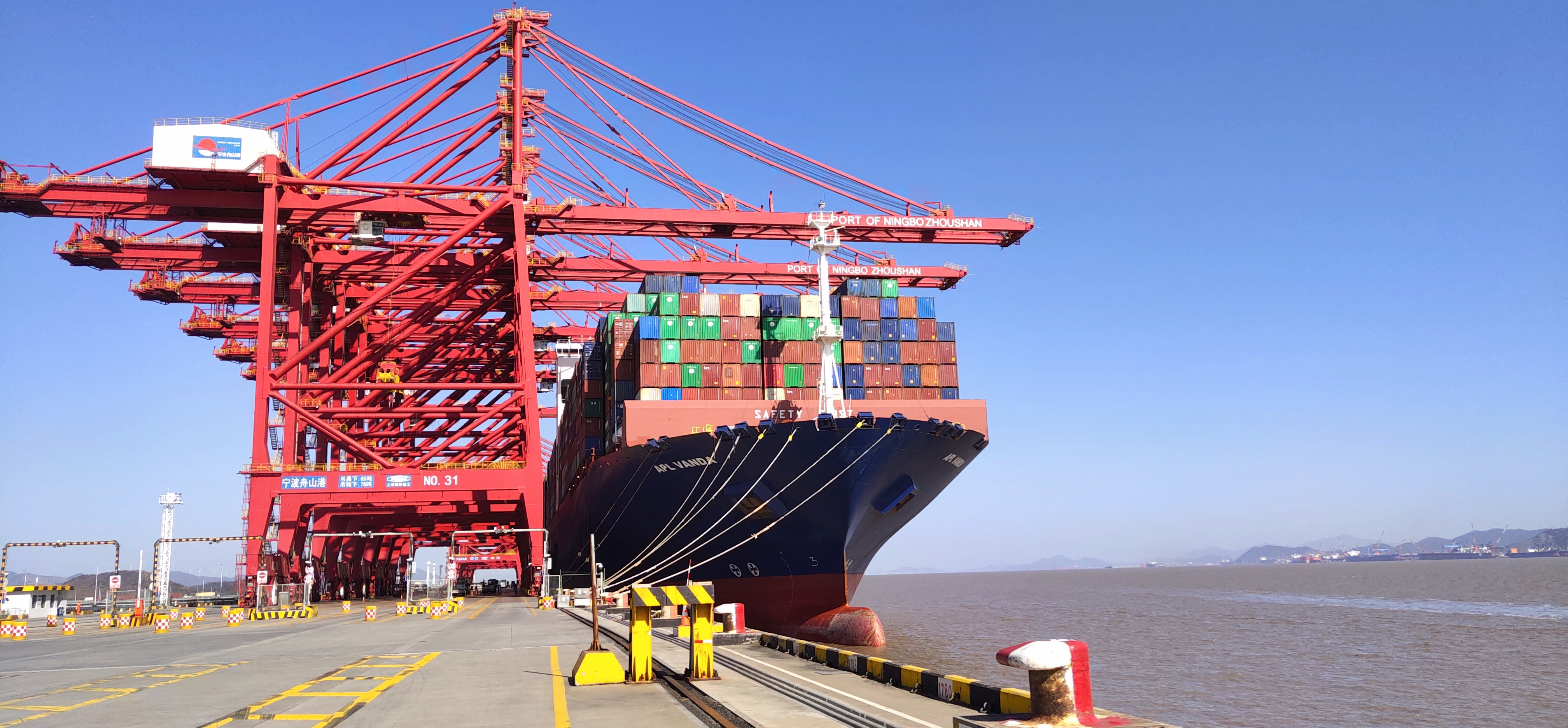 1月29日,“达飞万代兰”轮携6100余个空集装箱靠泊宁波梅山港区。(新华社发 赵国强摄)