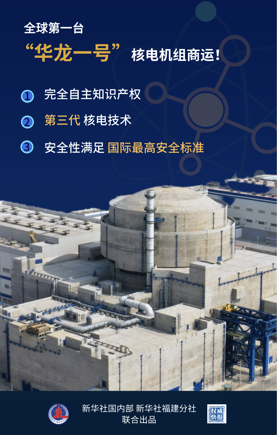 1月30日,“华龙一号”全球首堆——中核集团福建福清核电5号机组投入商业运行。