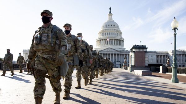 在华盛顿,美国军方和警方一直警告存在持续性的威胁。周一,美国陆军宣布将在美国首都维持大约7000名国民警卫队人员,他们将一直留驻到3月中旬。军方提到了对几起事件的担心,包括拜登总统将对国会两院联席会议发表演说、对前总统特朗普的弹劾审判以及一年一度的“为生命游行”活动。