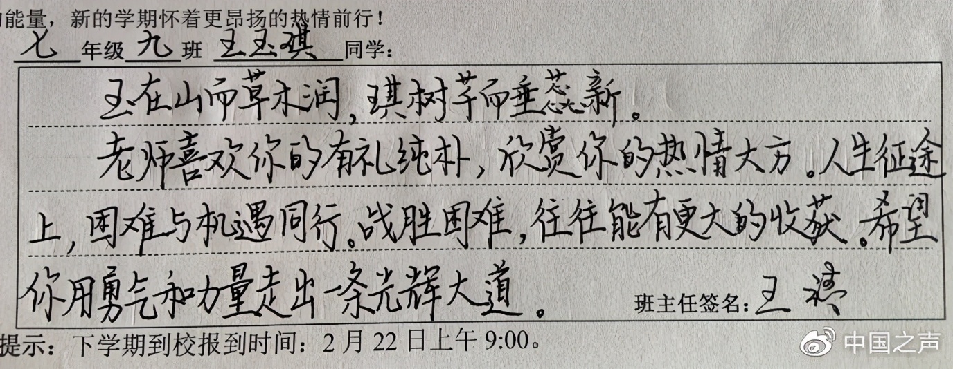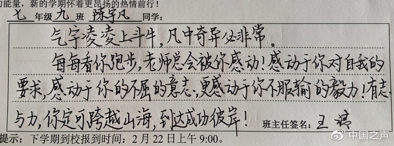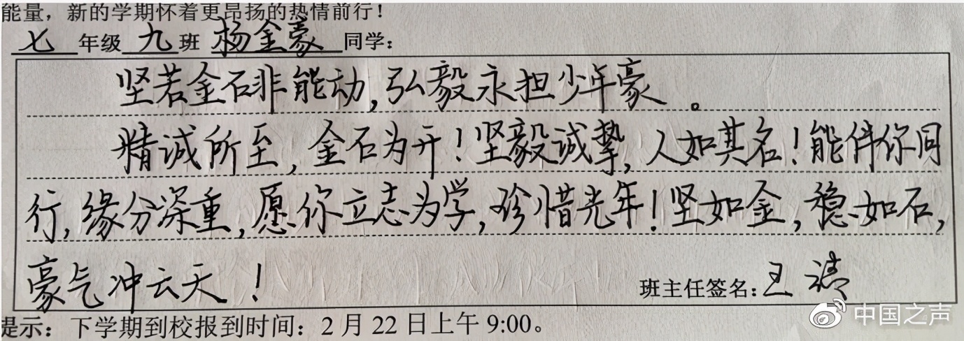 特殊的寄语让他觉得