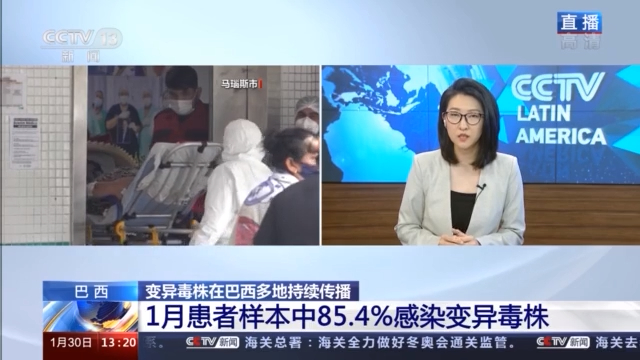 总台记者 徐丹娜:目前在全球的八个国家已经发现了携带这种病毒的感染病例,而在巴西国内,已经在圣保罗州发现了3例感染病例,在另外的五个州也发现了疑似感染这种变异病毒的病例,过去一周内,巴西全国的日均新冠肺炎死亡人数为1068人,达到了去年以来的新高,日均确诊病例数也超过了52000例,这种传染性更强的变异性病毒可能已经在巴西境内传播开来,这将给巴西的疫情发展形式带来更多的不确定性。