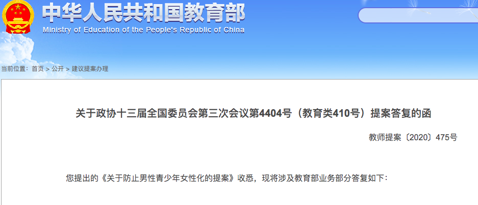 提交了一份《关于防止男性青少年“女性化”的提案》