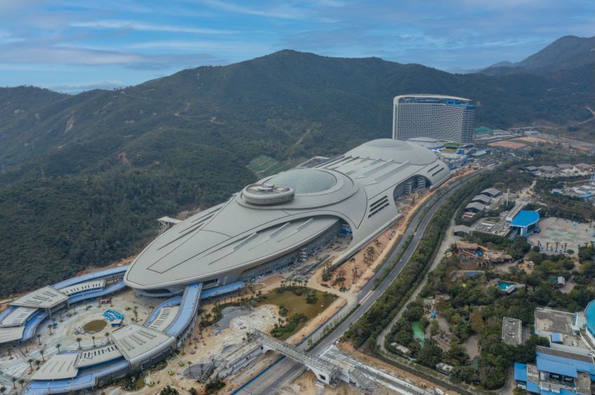 1月30日,珠海横琴新区宣布,占地50万平方米的室内海洋科学乐园正在进行最后的内部施工阶段,将于今年年内开园。它的外形犹如一艘来自未来的外星巨舰,内部总运营面积约50万平方米,可同时容纳超过5万名游客。