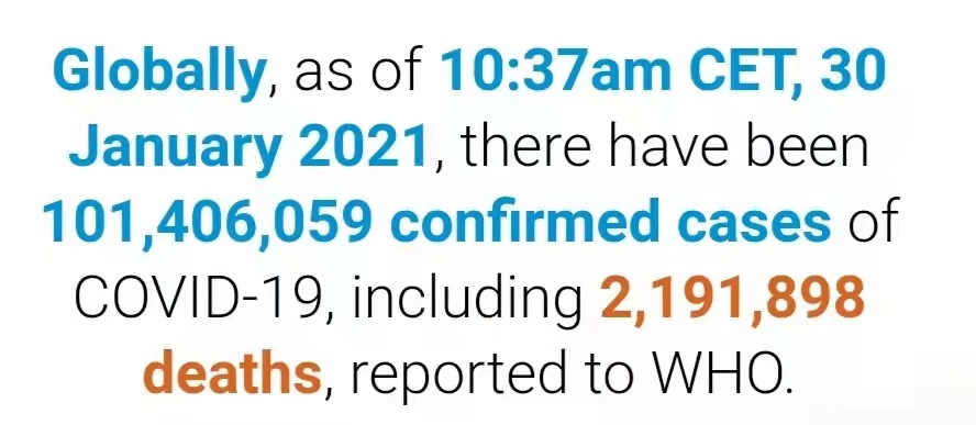 世卫组织:全球新冠肺炎确诊病例超过1亿零140万例