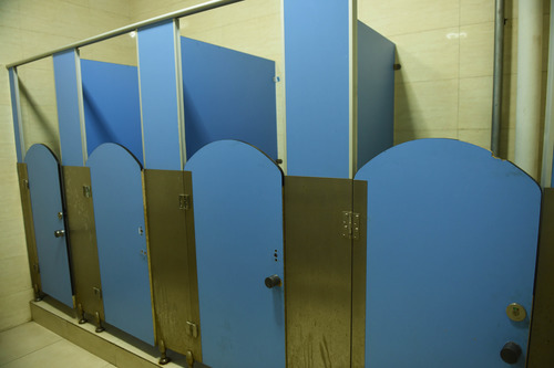 ↑2016年,北京市某小学家长在网上发文称,孩子遭到同学的“霸凌”。图为事发的厕所。新华社记者李文摄