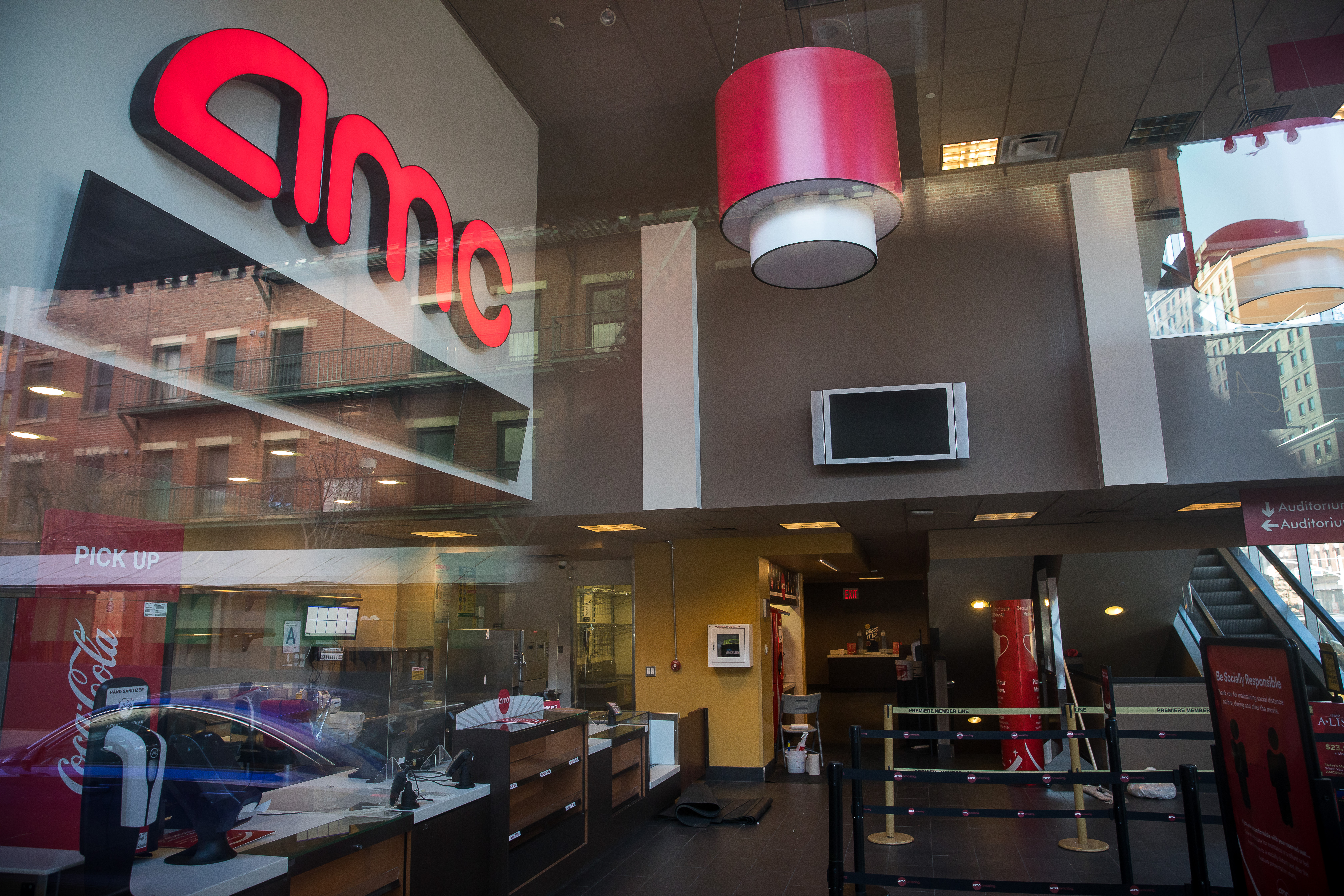 这是1月28日在美国纽约拍摄的一家受疫情影响关闭的AMC影院。(新华社发,郭克摄)