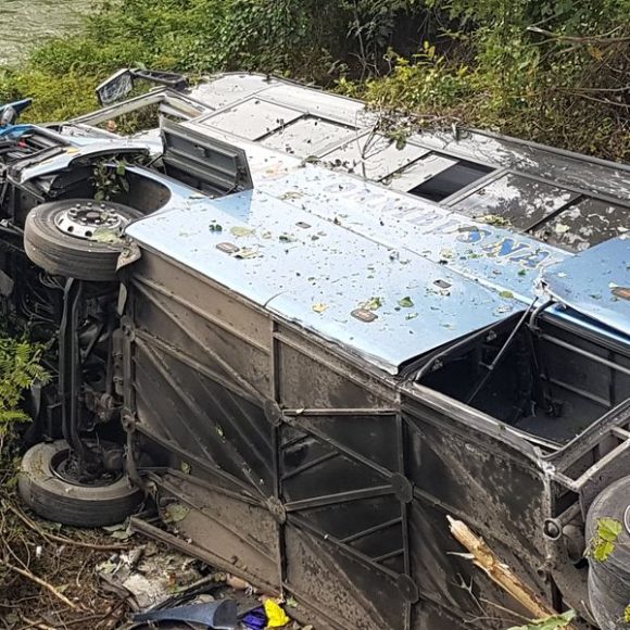 事故发生时驾驶员失去了对车辆的控制,致使该客车冲出公路并侧翻。