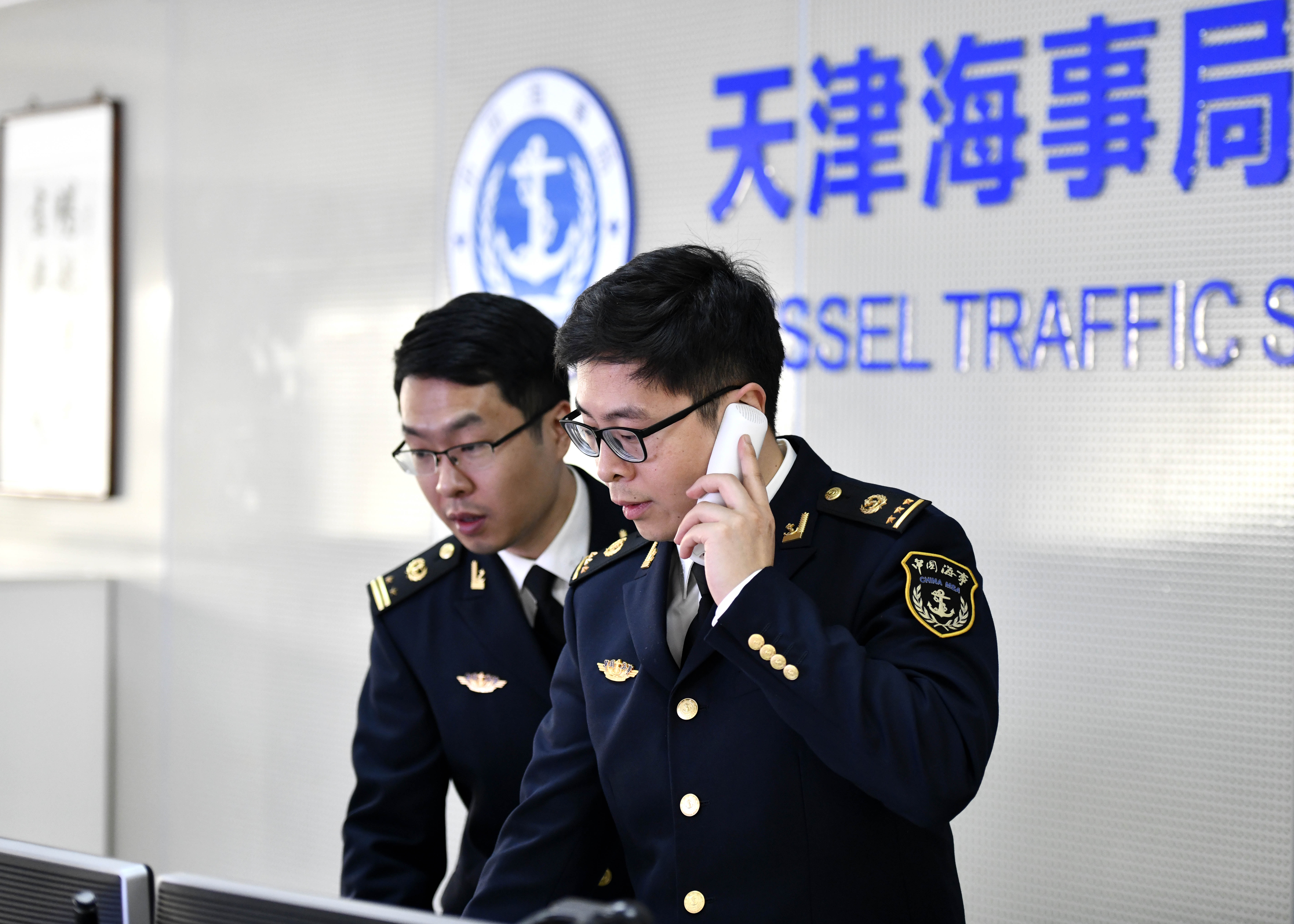 新华社天津1月31日电(记者刘惟真)“报告天津交管中心,‘中谷黄海’离泊完毕,申请上线出港。”“‘中谷黄海’,这里是天津交管中心,请小角度上线,注意与进港船加强联系,保持14频道守听,再会。”……