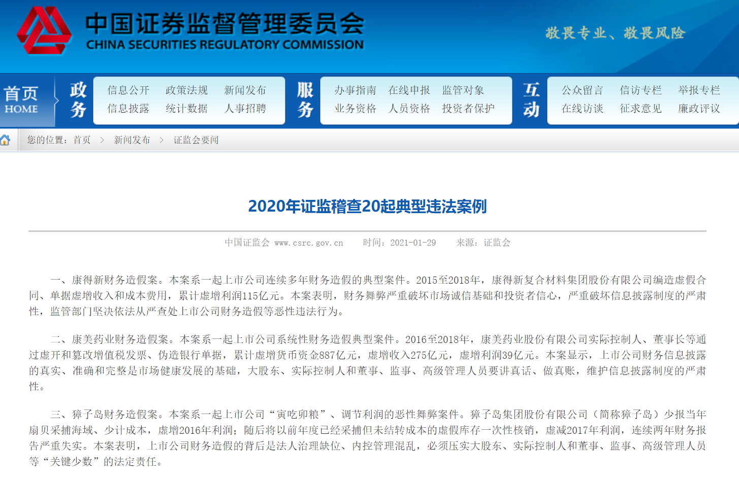 2021年1月,最后一个交易日,证监会发布了2020年证监稽查20起典型违法案例,可以说信息量极大。