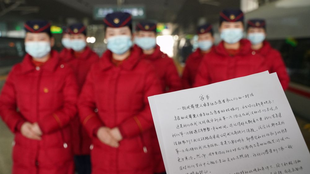 “此刻,我正在美丽的内蒙古给你们写信,是因为知道你们一年一度的春运大考就要来临,希望你们能把战‘疫’时无私奉献的精气神再度拿到你们春运的战场中去,愿通过你们的不懈努力,交给全国人民一份满意的答卷……”