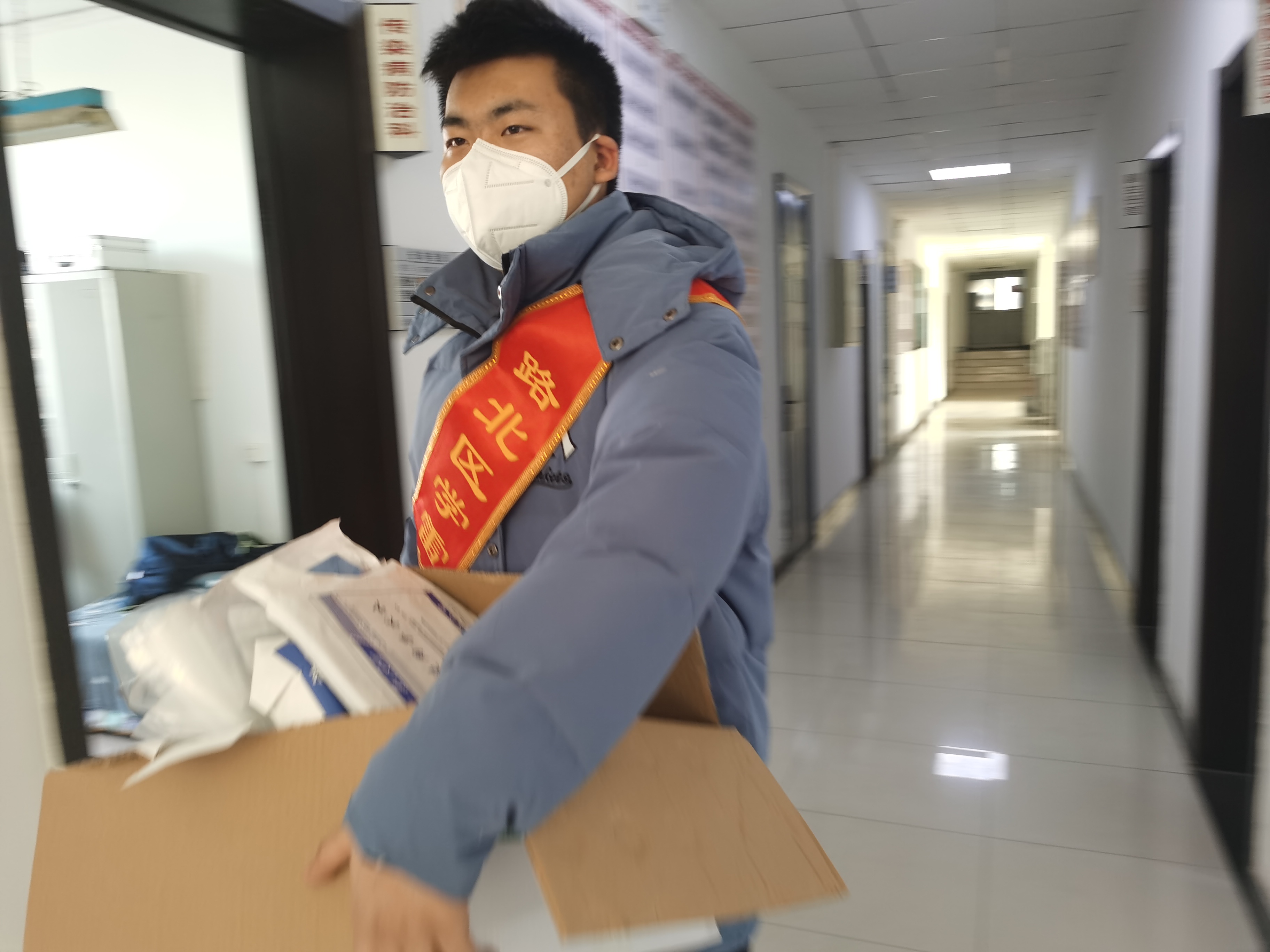 1月30日,唐山市路北疾控中心志愿者何以轩帮助去隔离点采样人员准备各类防护物资。(受访者供图)