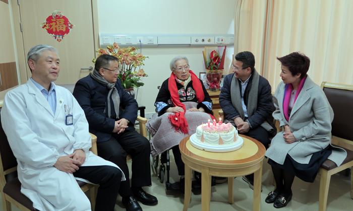 按中国传统习俗,近日上海电影集团为老人庆祝百岁大寿。