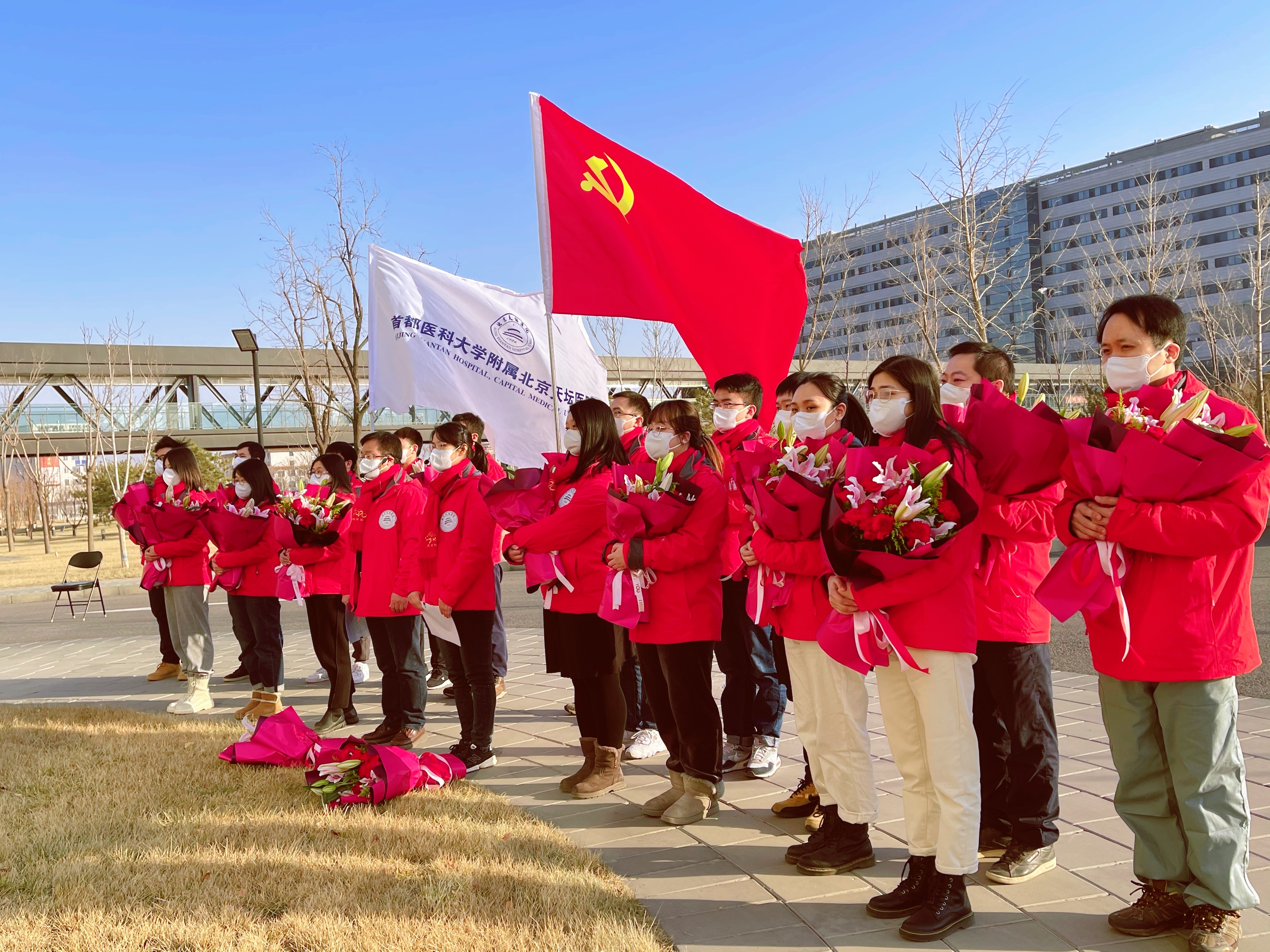 ↑北京市第一支援冀核酸检测医疗队返回北京天坛医院。(北京市医院管理中心供图)