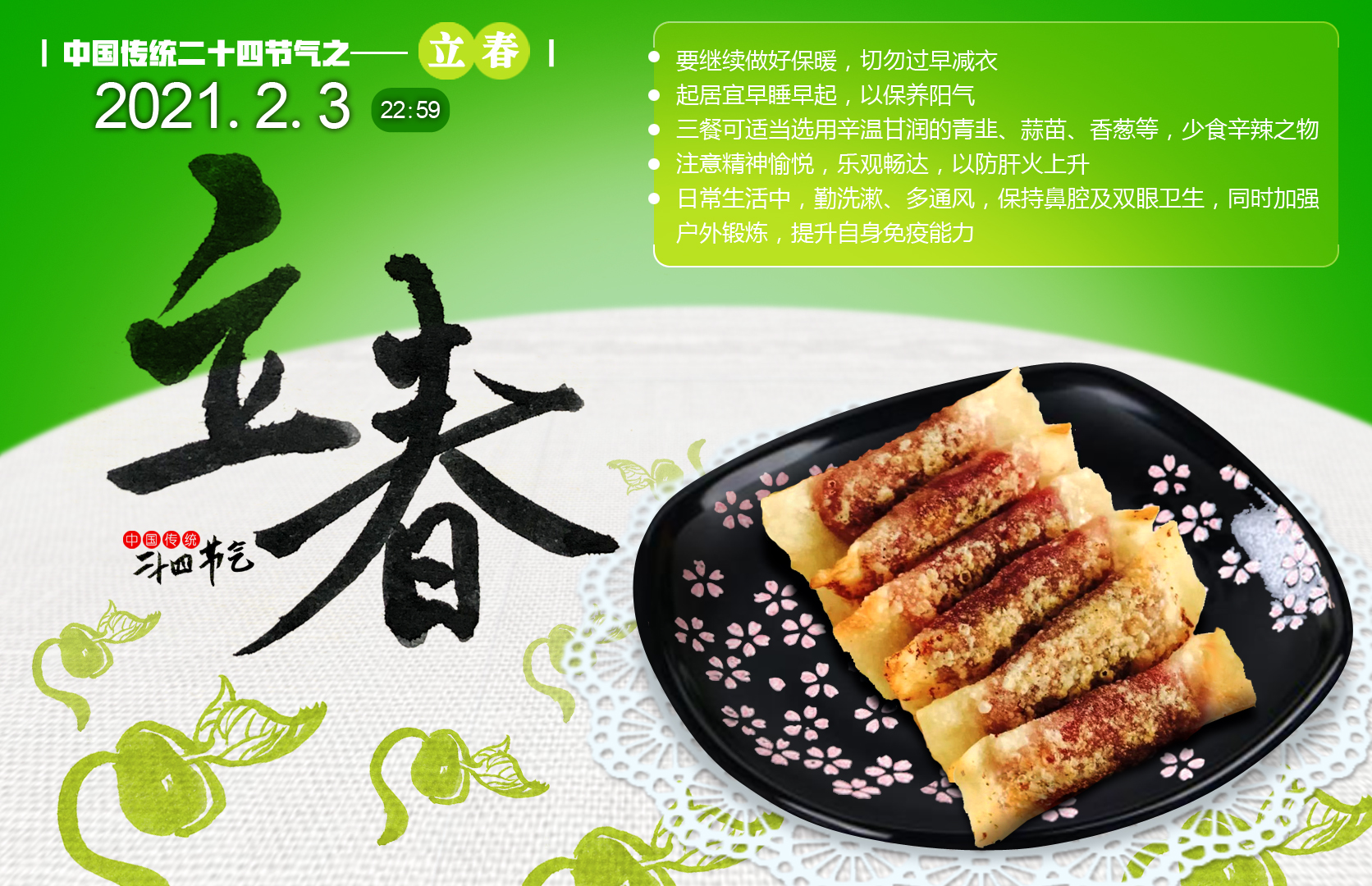 至今,我国民间一些“立春”习俗依然保存,如农村仍有鞭打泥牛的“打春”之举,意在岁首备耕,企盼风调雨顺。此外,家中还要吃春盘、吃春饼、吃春卷或吃萝卜“咬春”,喜迎春天的气氛随处可见。