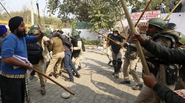 法新社一名在现场的记者说,29日一名警察在与一名挥舞刀剑的农民扭打时手部受伤。还有高喊着“枪毙叛国者”的蒙面男子冲破警方的警戒线和钢铁路障向农民冲去。当局对加济布尔的一个抗议营地断电断水,但数以百计的农民连夜驾拖拉机赶来增援,这令印度总理纳伦德拉·莫迪自2014年执政以来面临的最大挑战越演越烈。