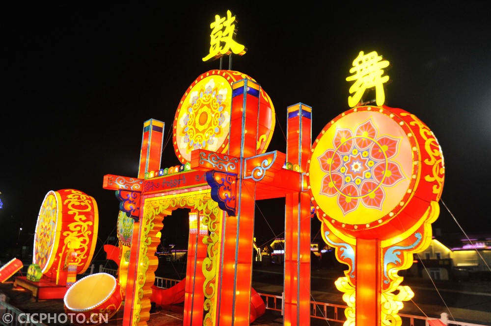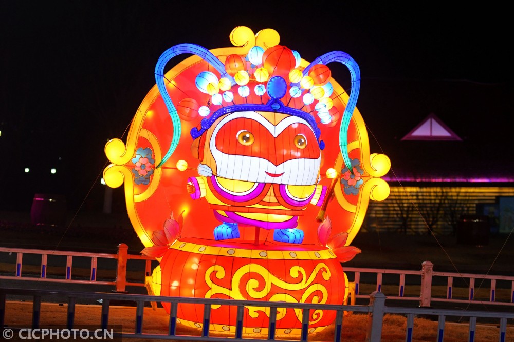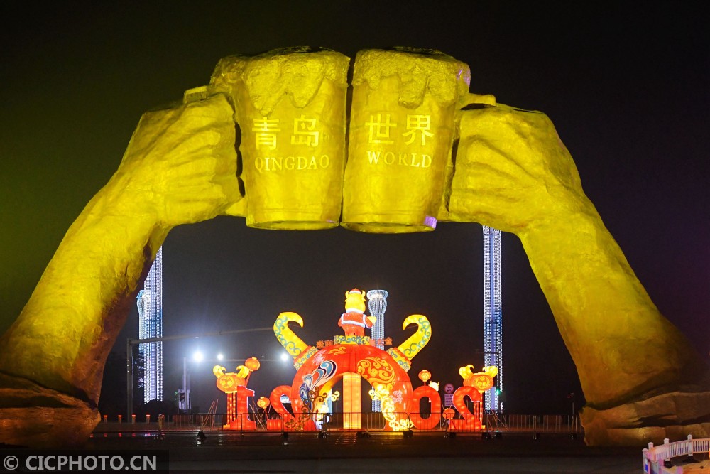以上图片:2021年1月26日在山东青岛西海岸新区金沙滩啤酒城拍摄的花灯。CICPHOTO/俞方平 摄