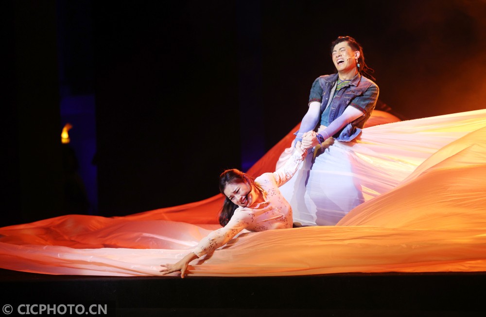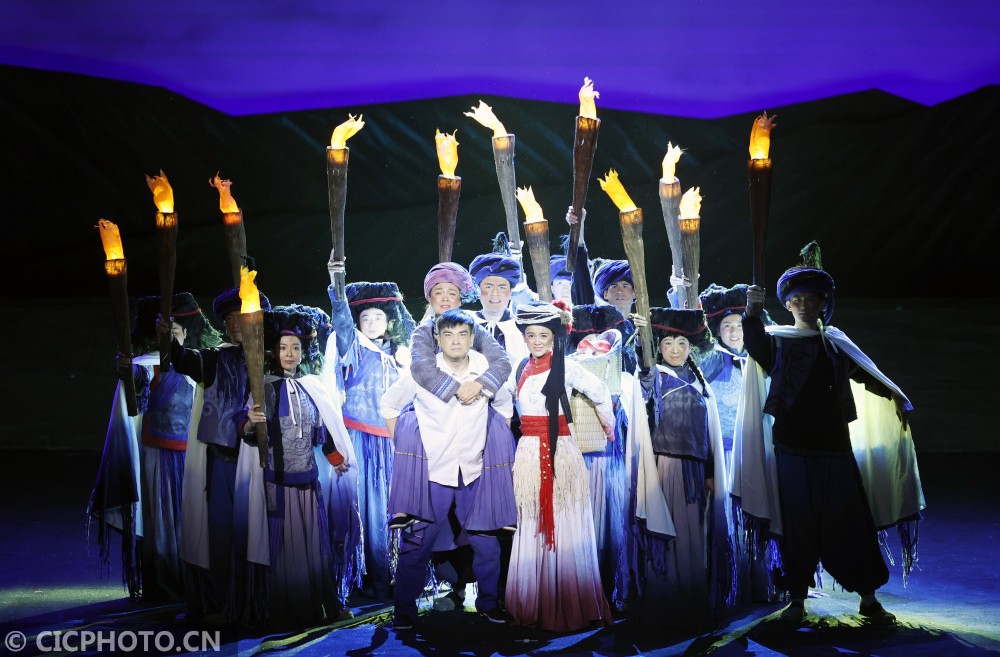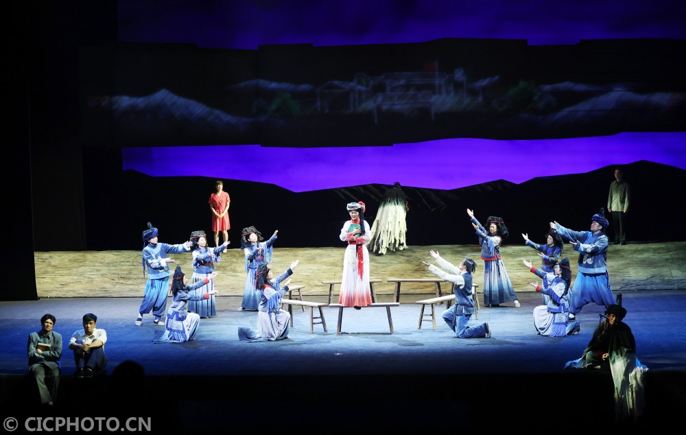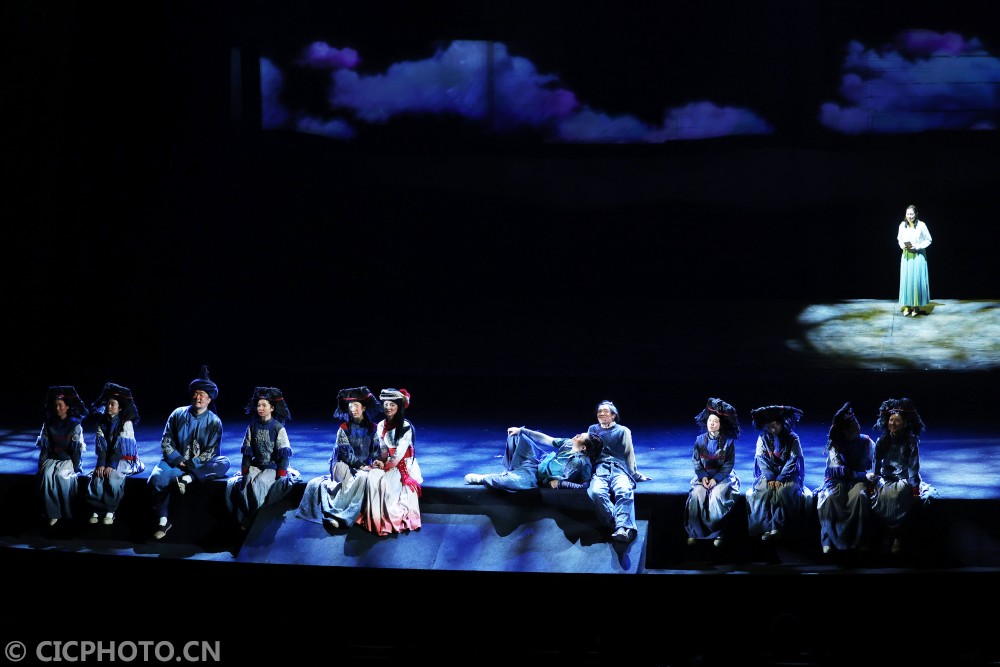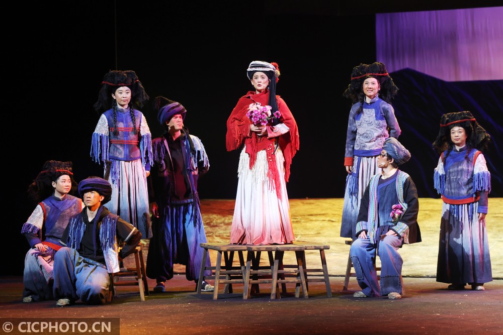 以上图片:2021年1月31日在江苏省南通市海安大剧院拍摄的话剧《索玛花盛开的地方》剧照。CICPHOTO/徐培钦 摄