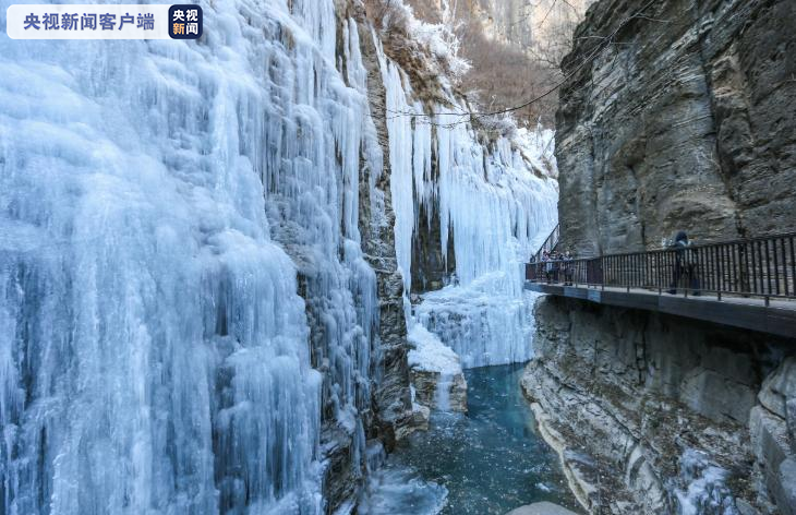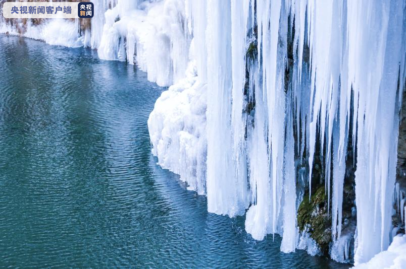 近日,位于河南省北部的世界地质公园云台山冰瀑冰挂景观长达千余米,晶莹剔透似冰雪“画廊”,走进冬日的云台山仿佛游走在一片冰域森林,漫山遍野的植被被透明的冰层包裹。