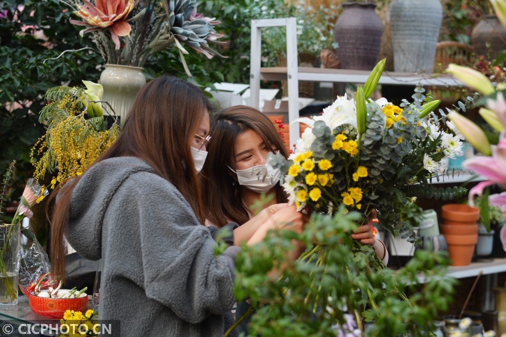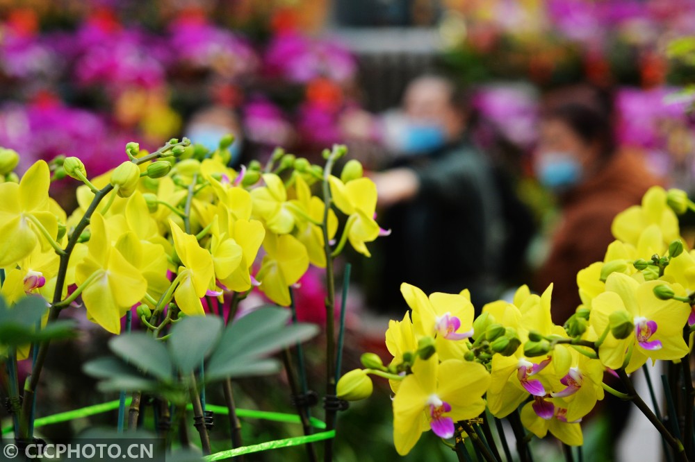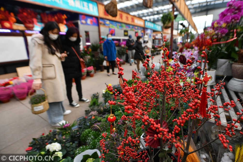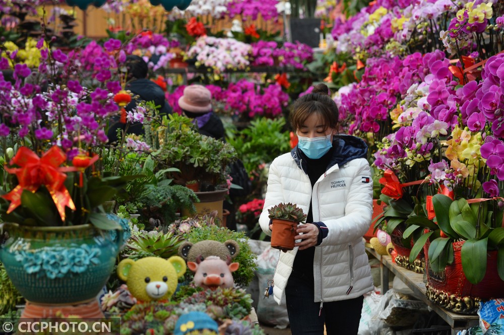 以上图片:2021年1月30日,山东省青岛市的市民在一花木市场选购年宵花卉。CICPHOTO/王海滨 摄