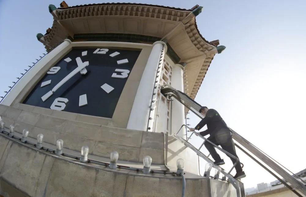 1959年建成的塔钟,在1993年、2008年经历了两次“换心手术”。从电子脉冲式设备更换为数字化控制步进电机精确走时,并可以通过北斗卫星、GPS卫星信号自动校时。