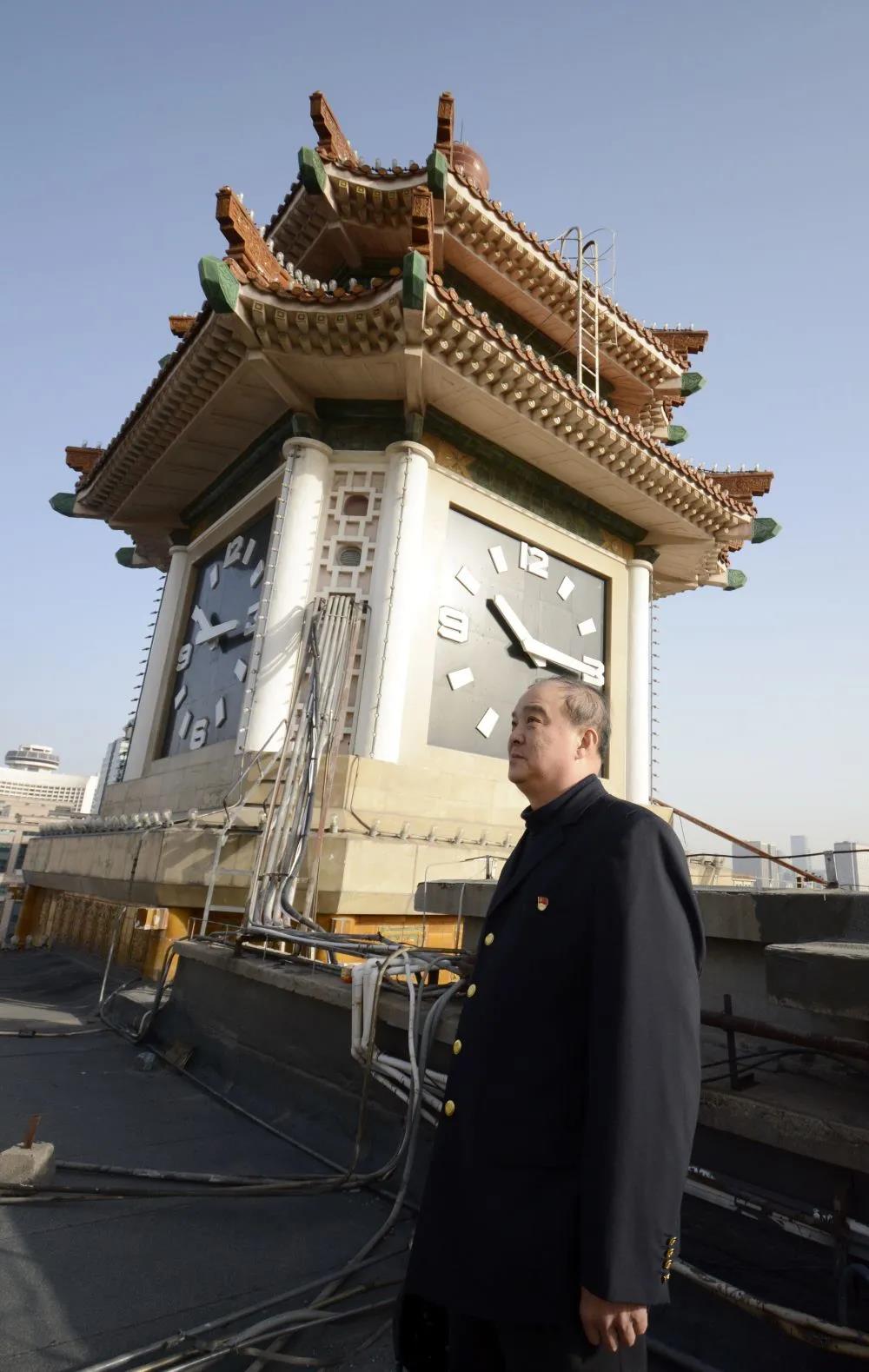 即将退休的张兵每天都要定时来到北京站楼顶上巡视塔钟。