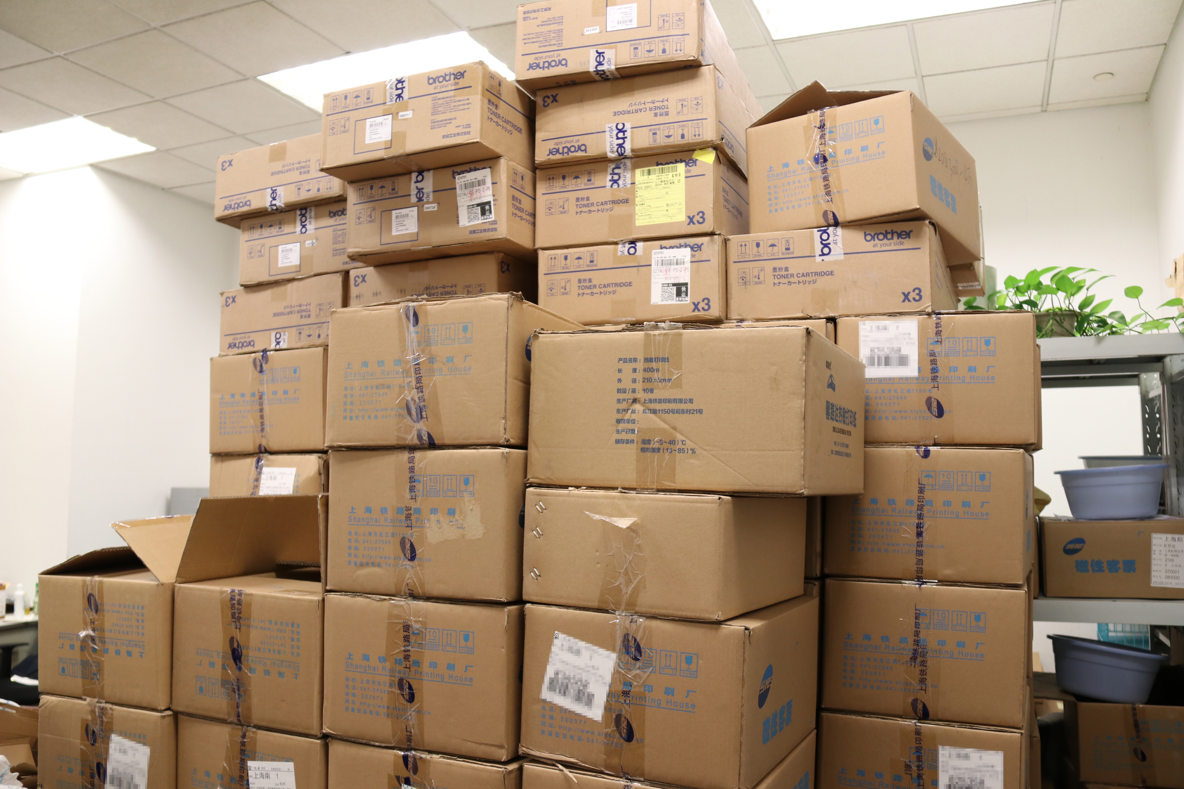 朱海波的工作也就多了一项新内容:调拨——把周边站点多余的纸质票转移到虹桥站,供旅客领取、报销。一进办公室,记者发现架子上、地上全是用来盛放空白磁介质车票的纸箱,两米多高的纸箱堆占据室内一多半空间,两张办公桌只能在角落。箱中的车票早已被清点入库,朱师傅专门把纸箱积攒下来以备不时之需。“上次去杭州领了四百箱车票,凌晨四点出门,晚上九点到家,杭州的站点没有空箱,我们就自己带箱子过去。”出差成为两位“票库总管”的工作新常态。