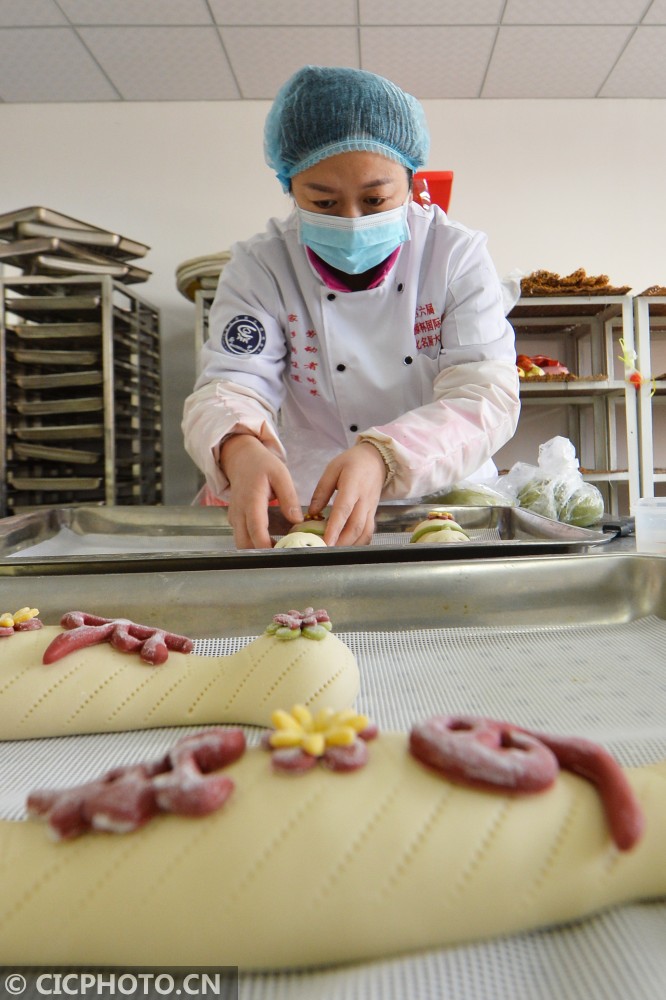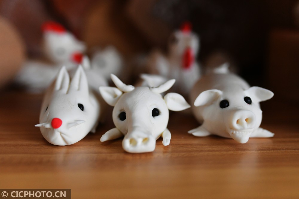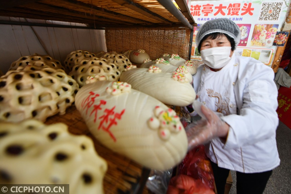 ↑2021年1月31日,这是在山东省青岛市城阳区流亭街道一家非遗馒头加工店拍摄的生肖面塑馒头。CICPHOTO/王海滨 摄