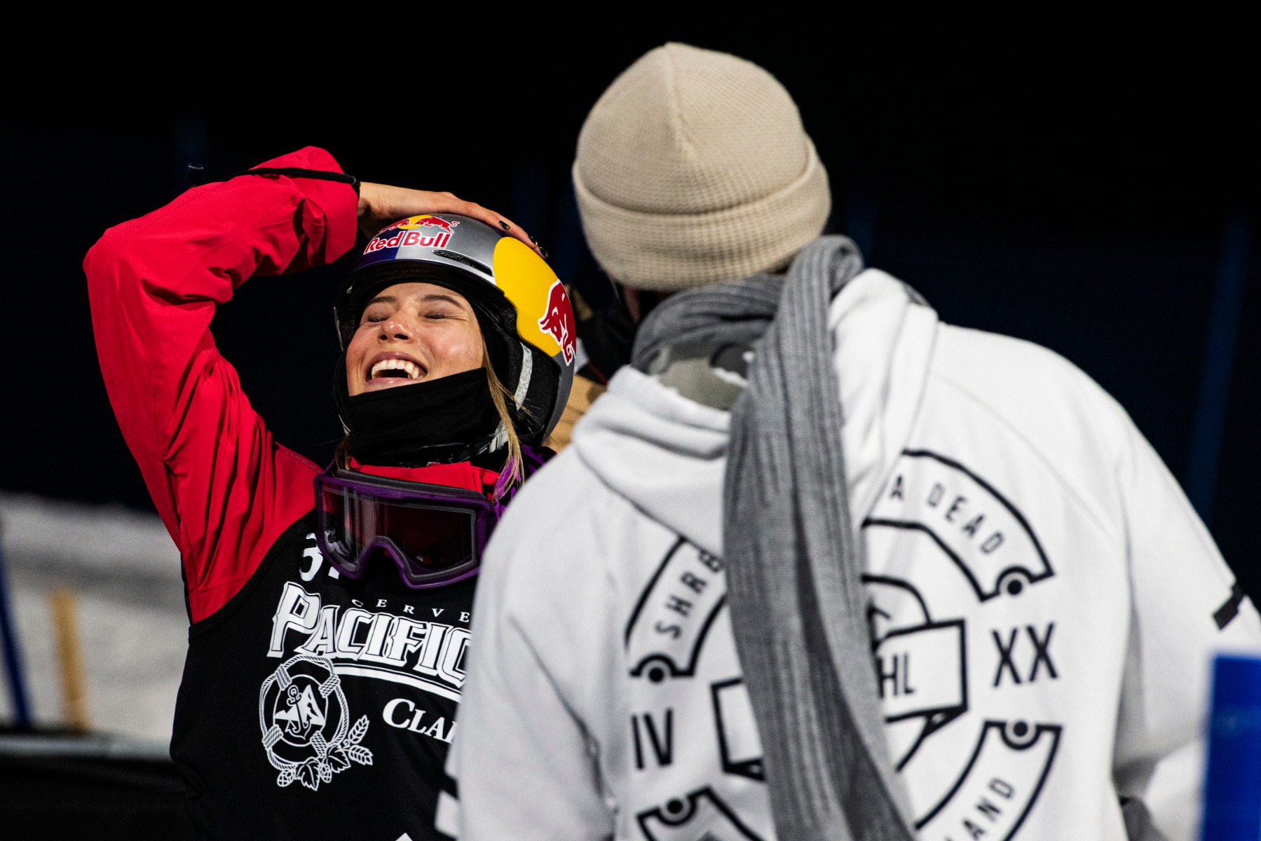 图为谷爱凌(左)世界极限运动会赛后庆祝夺冠。新华社/美联