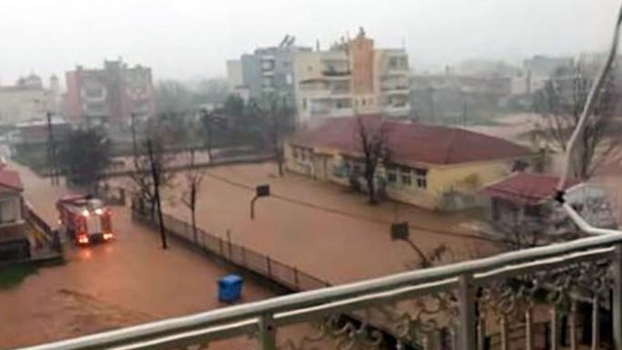当地时间2月1日,综合当地媒体消息,强暴风雨侵袭了希腊东北部埃夫罗斯地区,该地区亚历山德鲁波利斯市部分河流的水位不断上升,倒灌进城市。