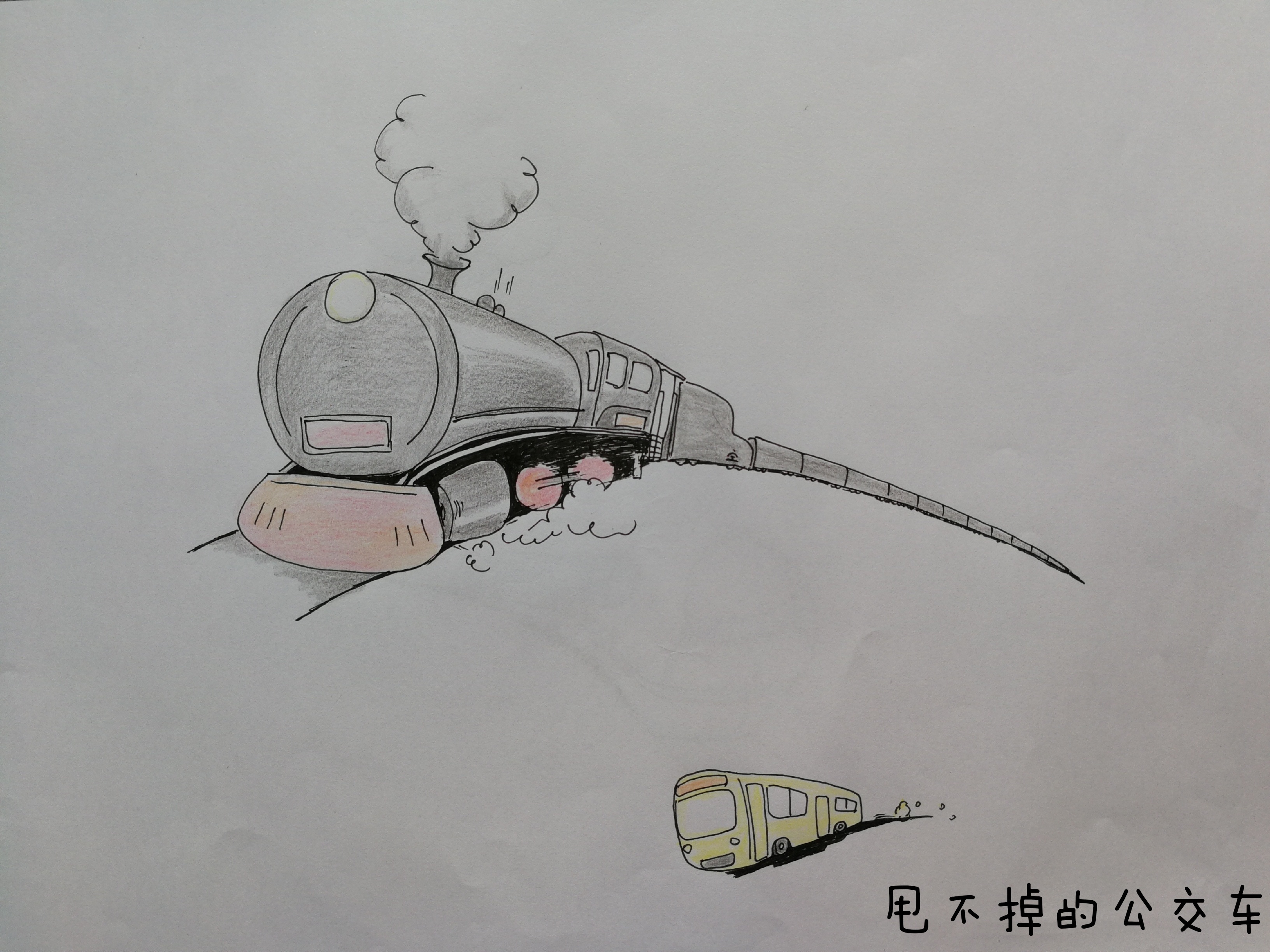 图6 以前蒸汽机车浓烟滚滚,速度很慢,甚至没有公交车跑得快。