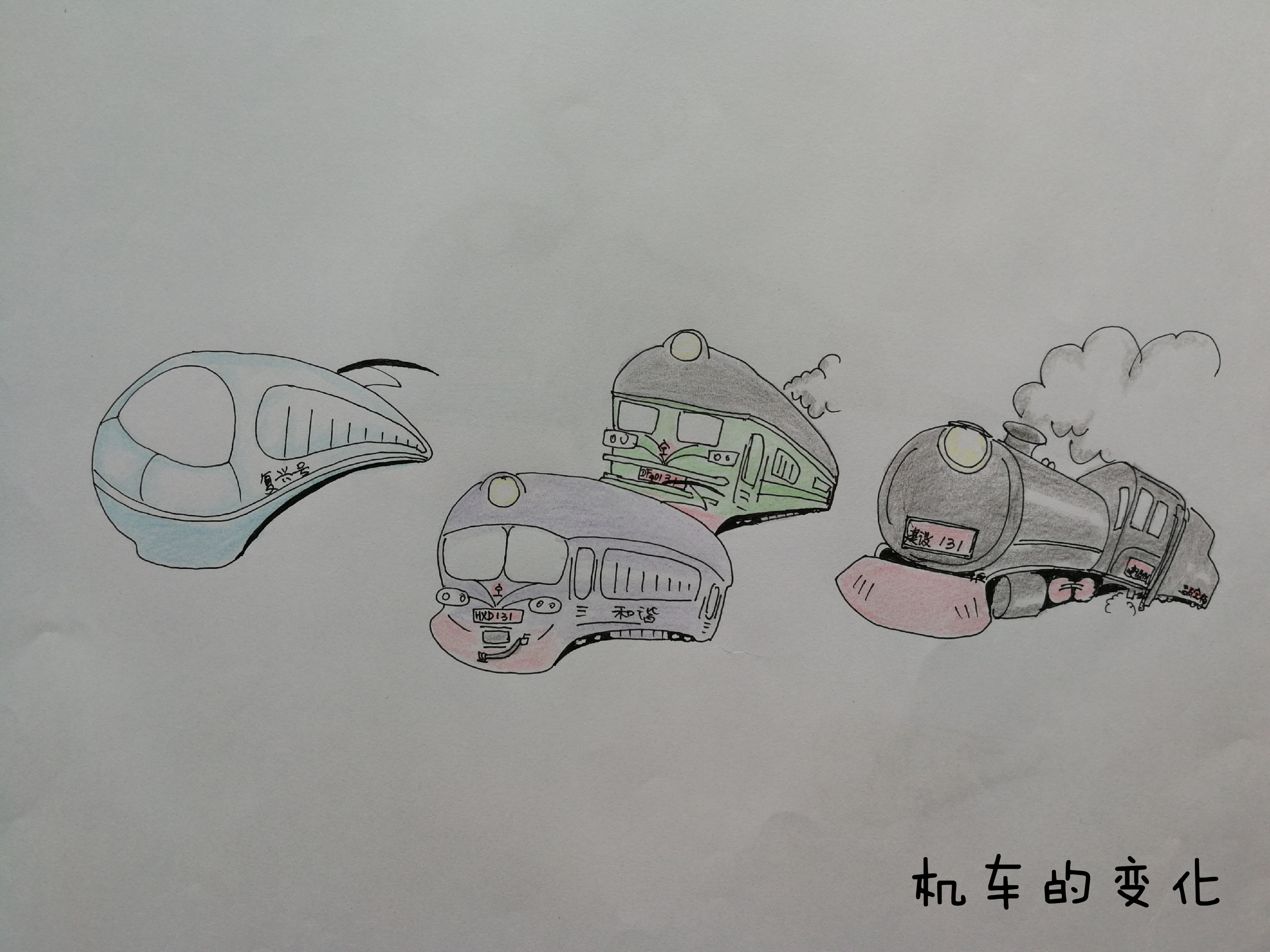 图5 蒸汽机车、内燃机车、电力机车到复兴号动车的变化。