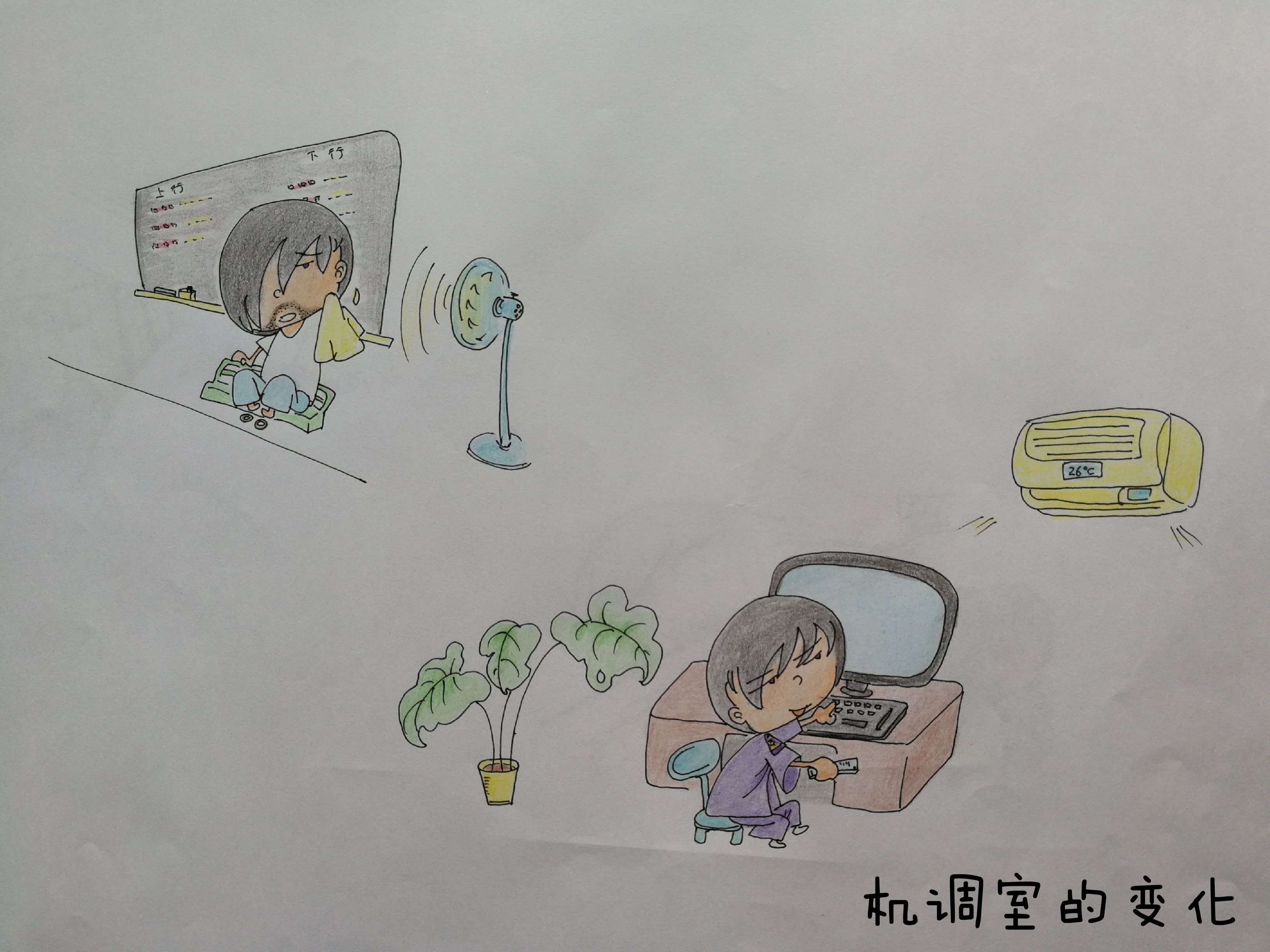 在工作之余,林金钰把这些见证变成了一幅幅漫画作品。在他的作品中有火车头的变化,一边是黑烟滚滚的蒸汽机、一边是婉如金凤凰的“复兴号”;有司机室的变化,一边是乌头盖面的司机在破旧的司机室内擦汗,一边是文质彬彬的白领在动车组内静坐;有春运出行的变化,一边是黑压压的人群,一边是轻松快捷的漫步……“开火车就像画画一样,不管是握着闸把还是画笔,都不能随意乱动,每一个动作都要精益求精、万无一失,只有这样才能绘就一副美好的蓝图。” 林师傅的自豪感溢于言表。