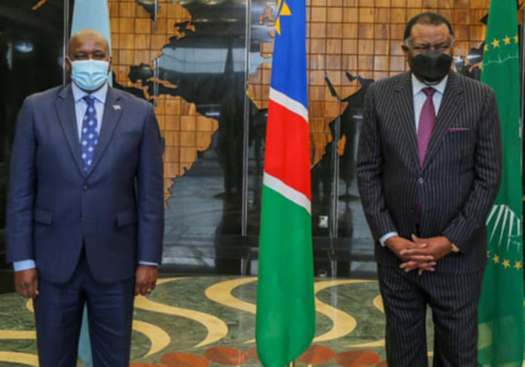 日前,纳米比亚总统根哥布和对纳进行工作访问的博茨瓦纳总统马西西在总统府会晤。
