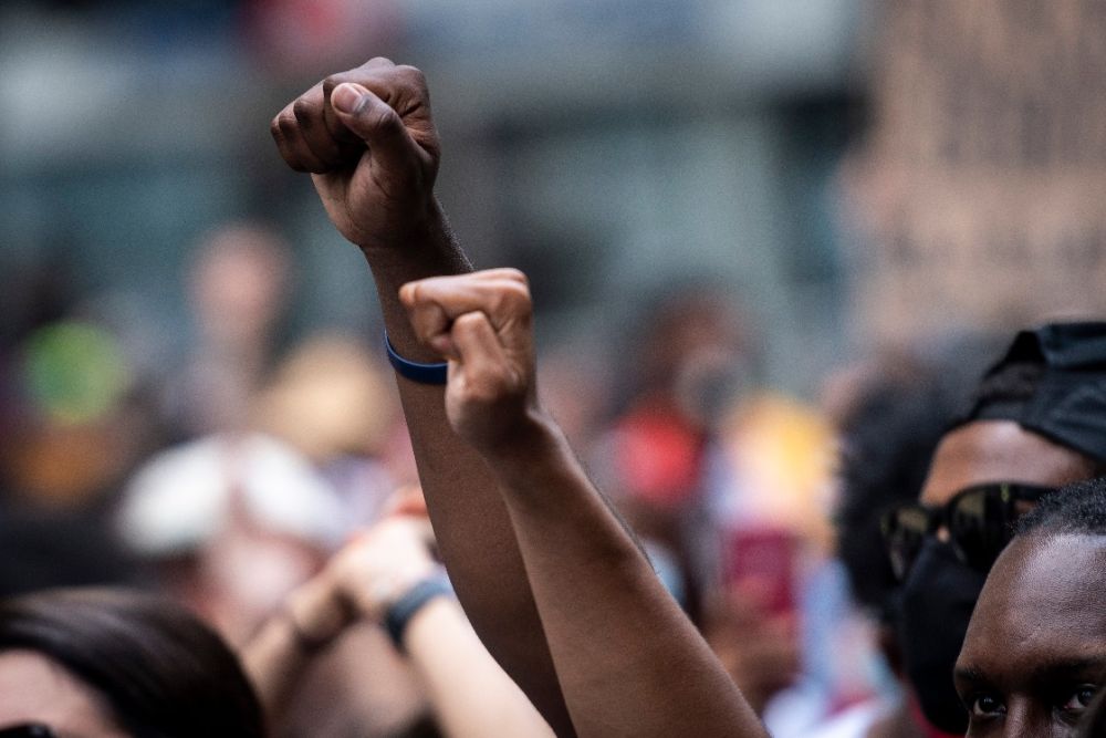 2020年6月19日,人们在美国芝加哥参加“六月节”集会游行,抗议警察暴力执法和种族歧视等问题。(新华社发,克里斯·迪尔茨摄)