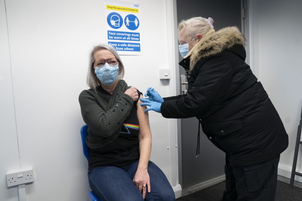 1月7日,在英国大曼彻斯特郡海德,一名女子接种新冠疫苗。(新华社发,乔恩·休珀摄)