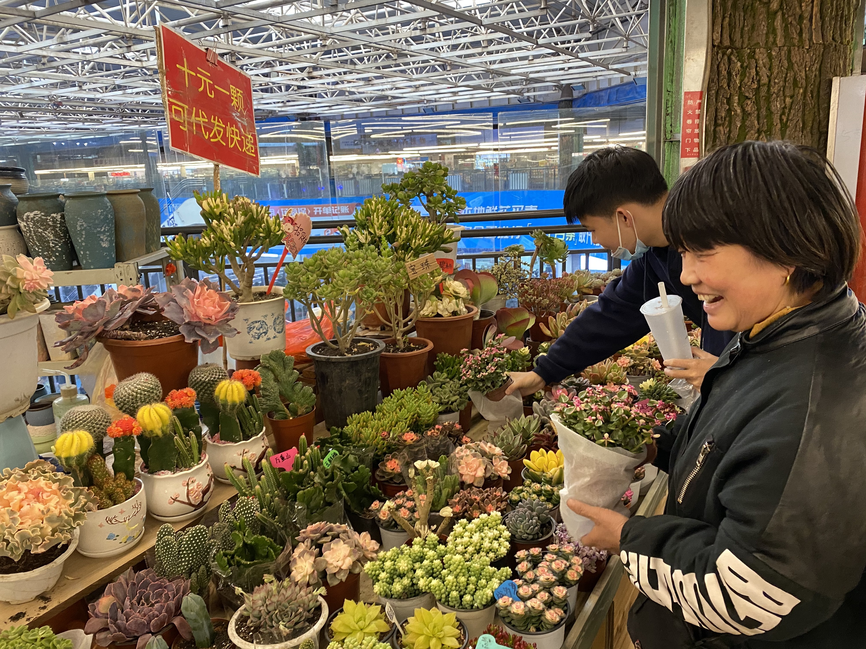 斗南外地花商不少,比如在市场二层经营多肉盆栽的花商基本来自河南。“村子里一家一户过来了,赚了钱,其他家的也就跟着来了……市场慢慢回暖了,购买盆栽鲜花的顾客也多了起来,我们也终于有了一些盼头。”宁阿姨说。