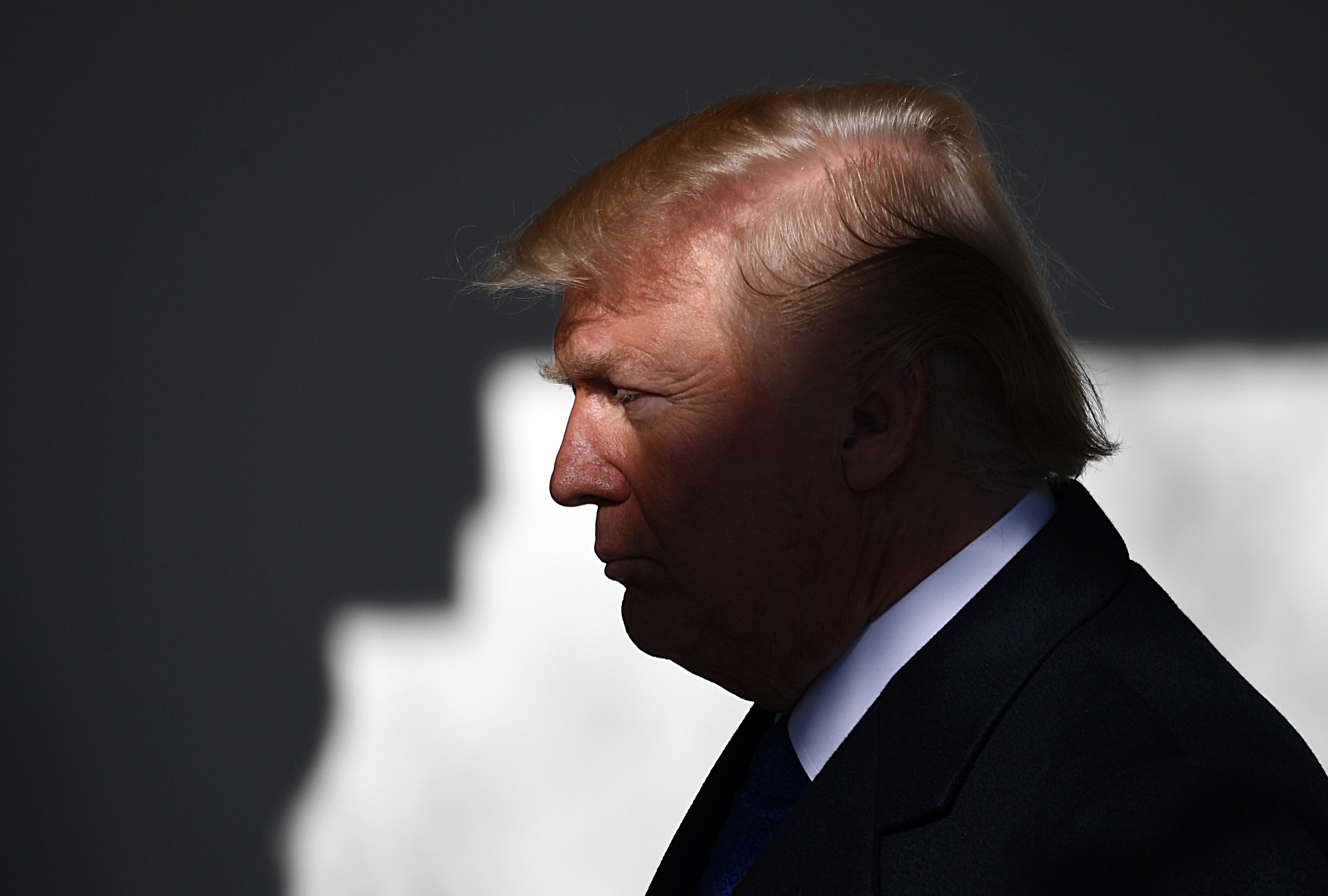 2018年1月19日,时任美国总统特朗普在华盛顿白宫等待出席活动。(新华社记者殷博古摄)