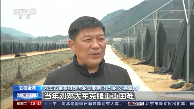 六安市金寨县沙河乡党委副书记、乡长 杨海涛:当年刘邓大军克服重重困难,抱着牺牲奉献的精神,千里挺进大别山,目的就是为了能使广大人民群众当家作主,过上更加美好的生活。今天我们更应该传承和弘扬好老一辈革命家这种坚贞忠诚、牺牲奉献、一生为民、永跟党走的革命精神,让老区人民过上更加富裕、更加殷实的小康生活。