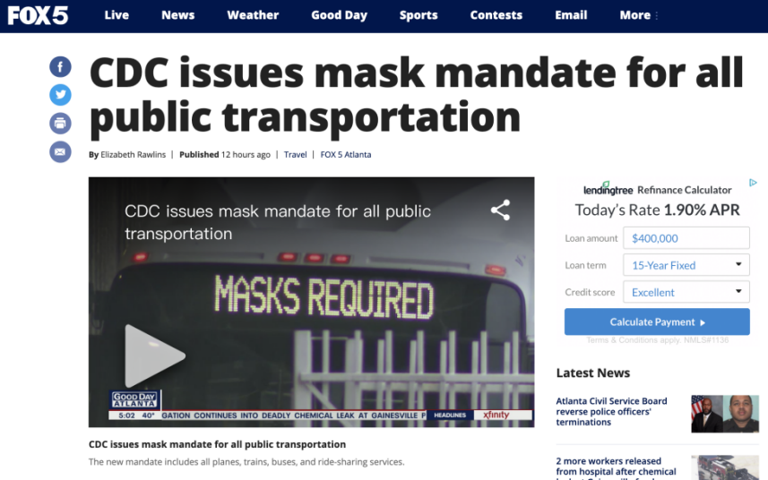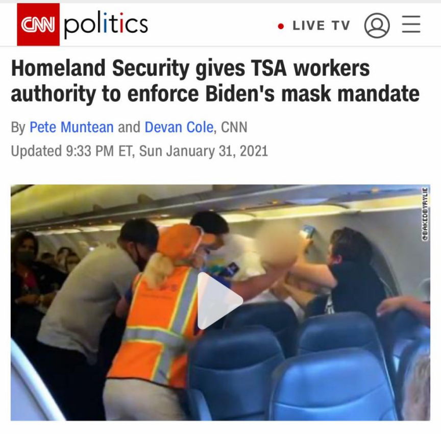 △福克斯新闻报道,“口罩强制令”于2月1日23时59分正式生效
