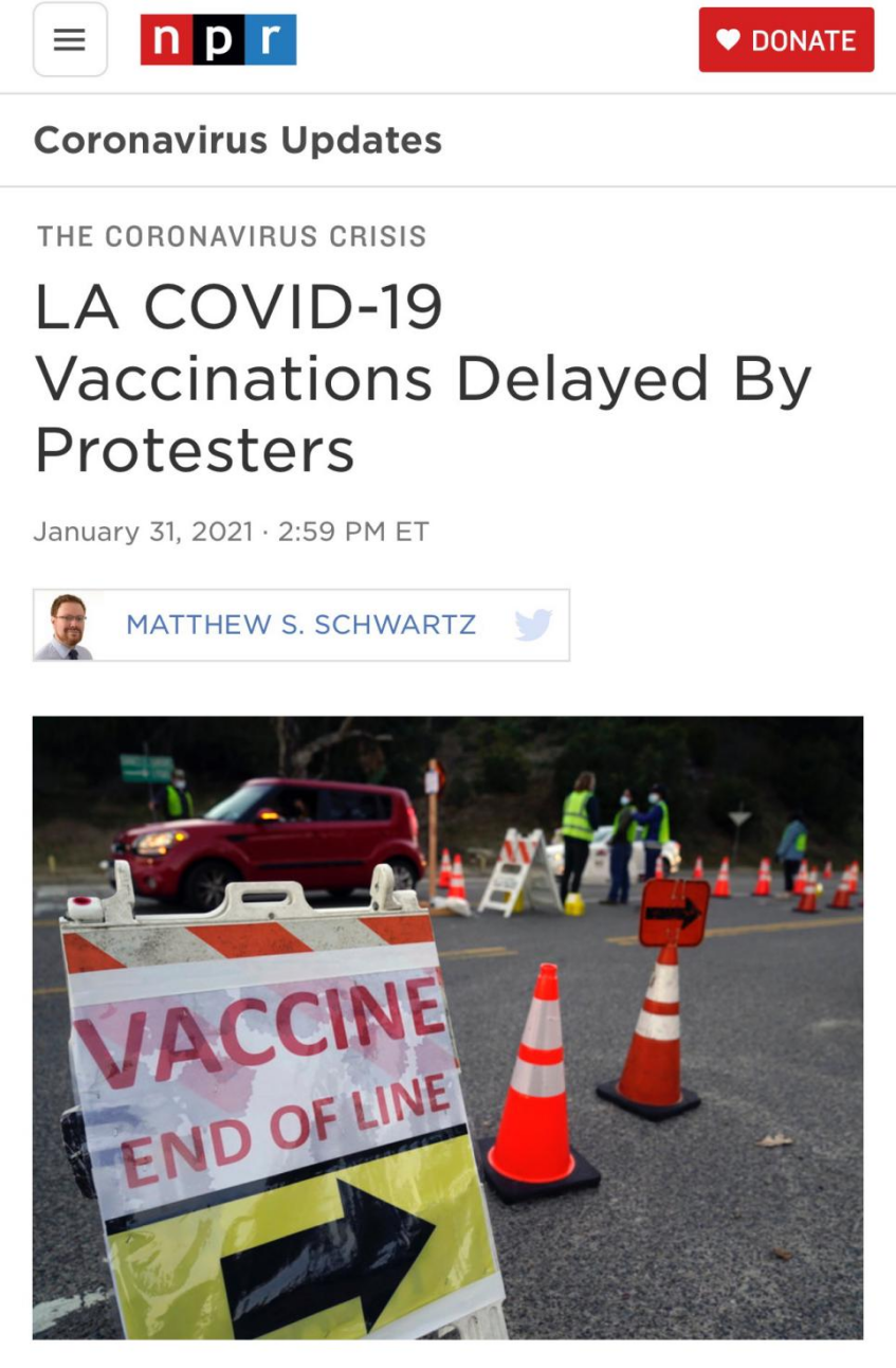 △美国国家公共电台报道,受抗议人员影响,道奇体育场检测中心被迫关停